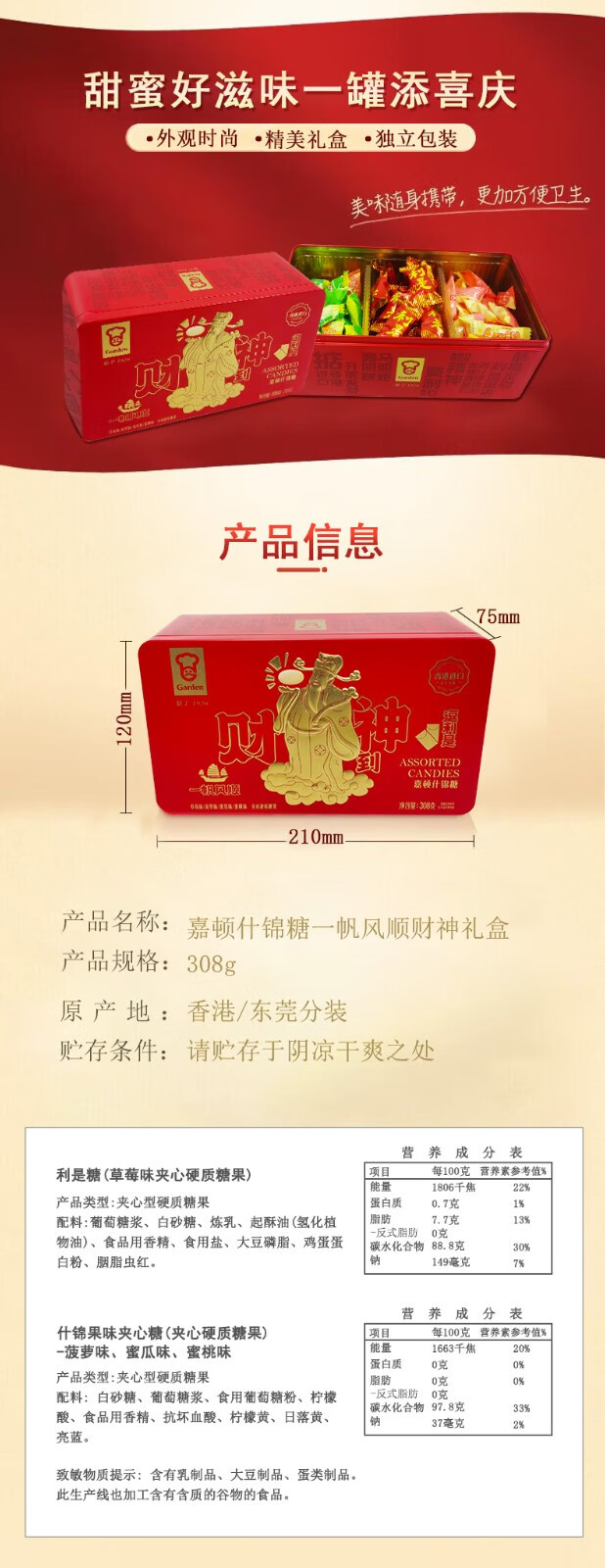 商品名称:嘉顿(Garden)嘉顿什锦糖一帆风顺财神礼盒308g