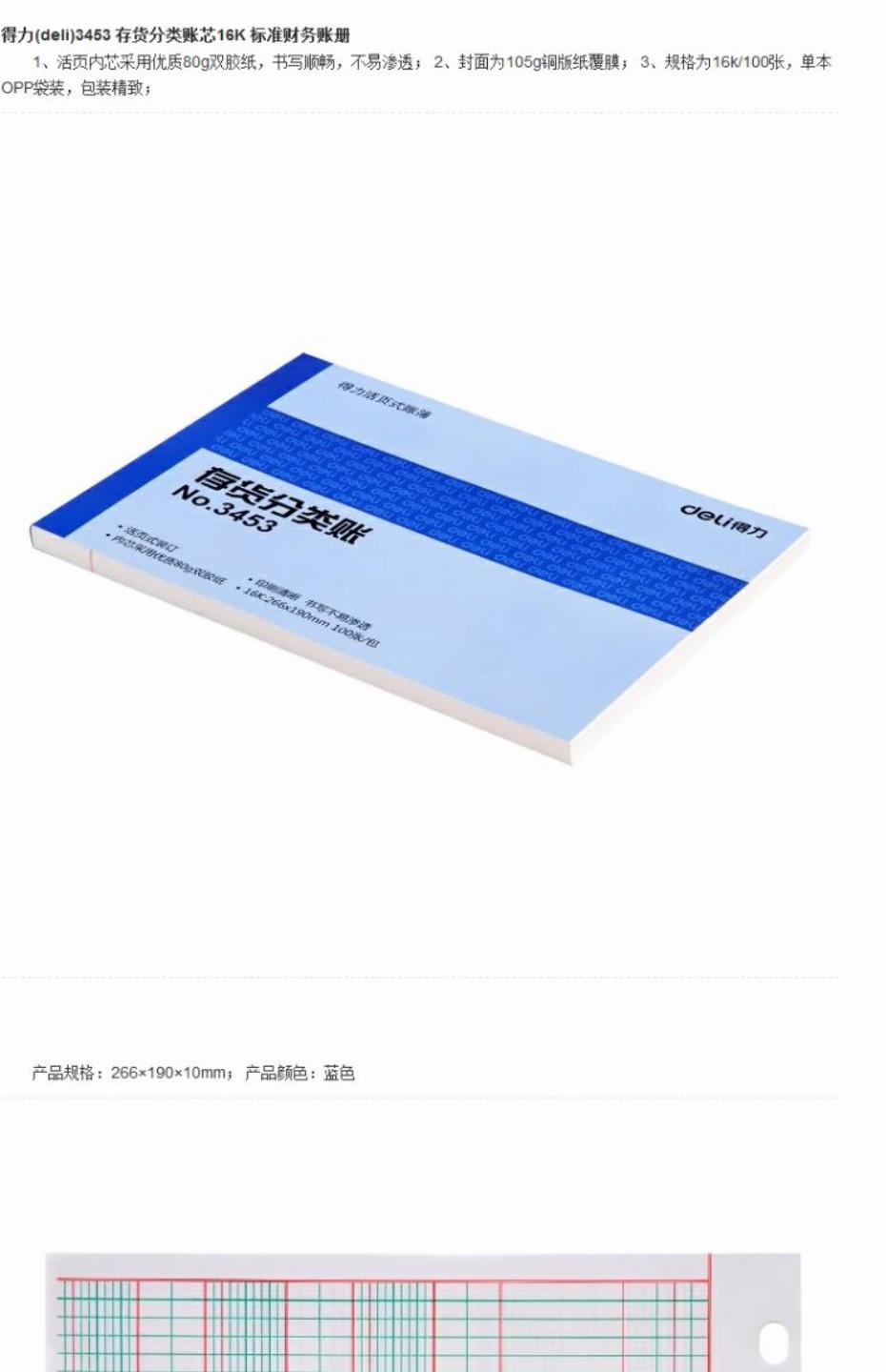 商品名称:得力 3453存货分类账本(蓝)100页16K账册活页账簿财务用品