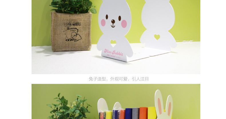 商品名称:得力 书立95422 学生卡通创意小兔书夹 可爱白时尚金属 7寸 一对