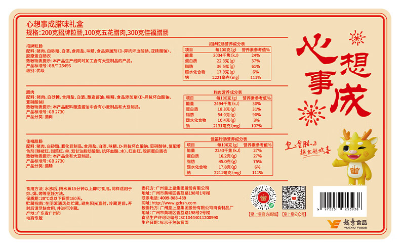 商品名称:皇上皇 心想事成腊味礼盒600g
