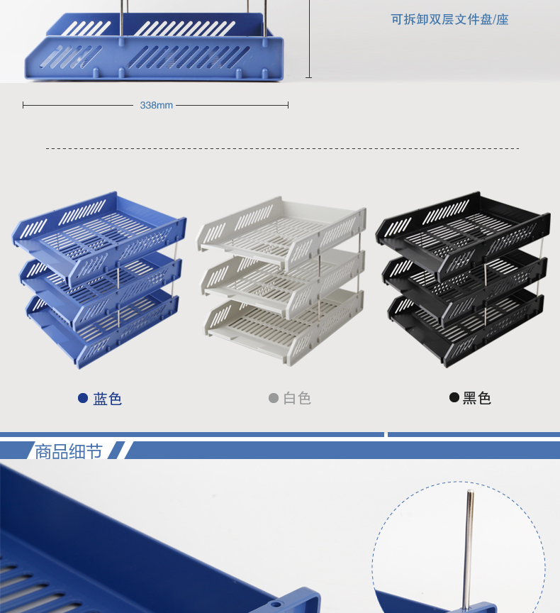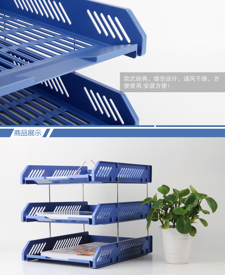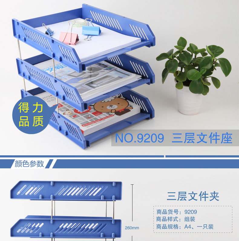 商品名称:得力 9209 办公用品 文件框篮三层文件盘文件座文件筐资料架