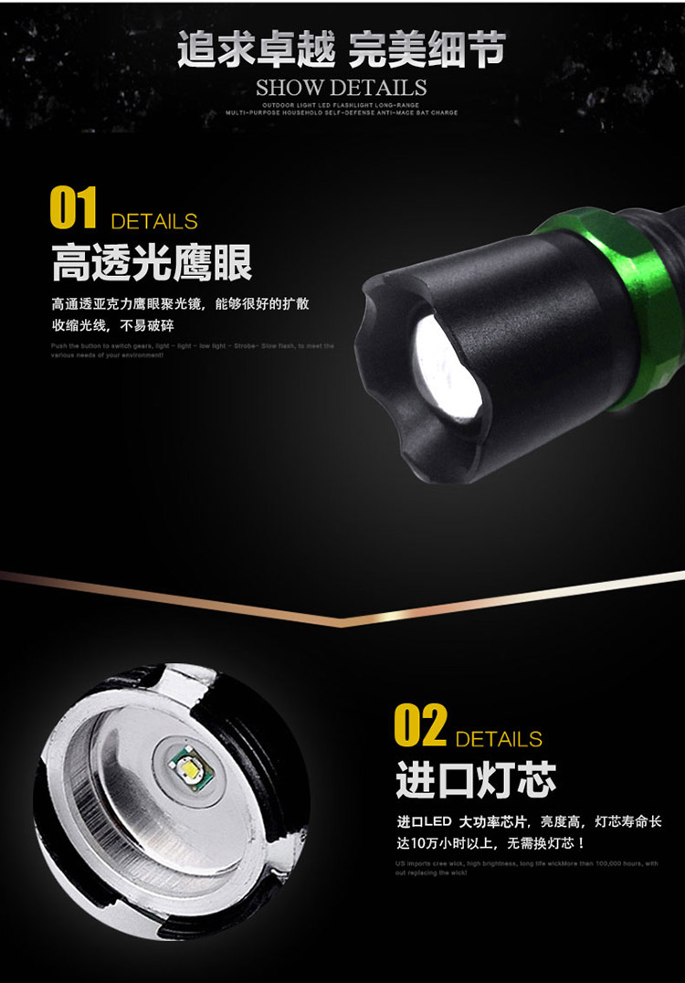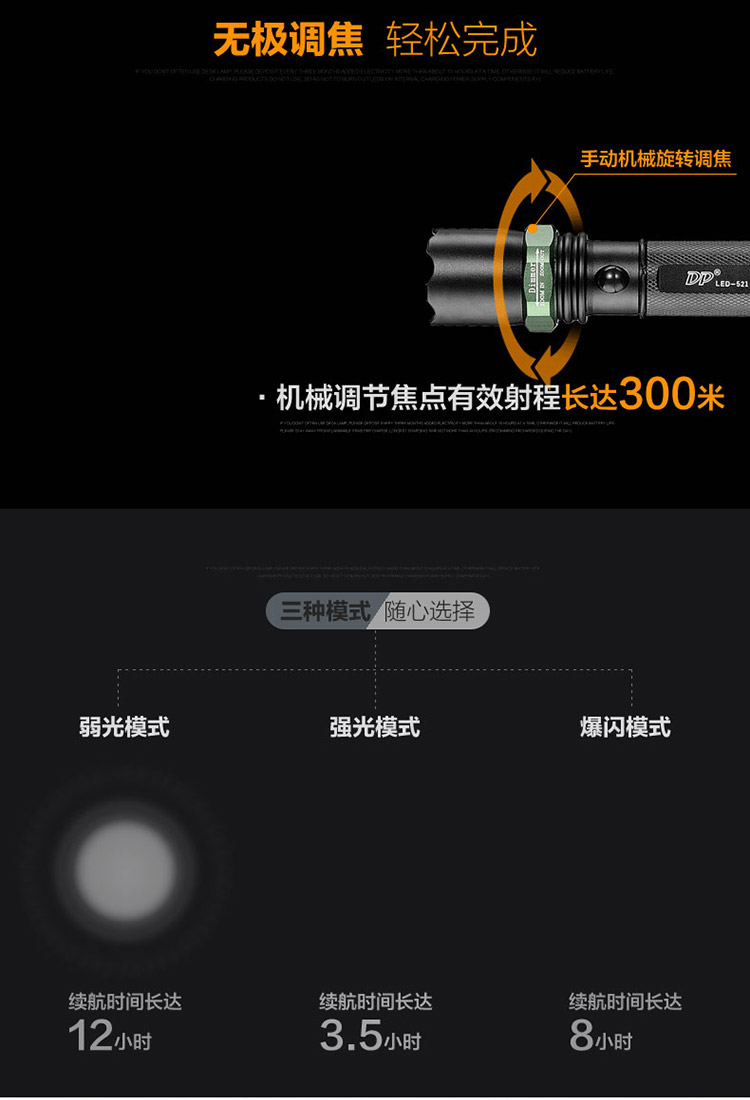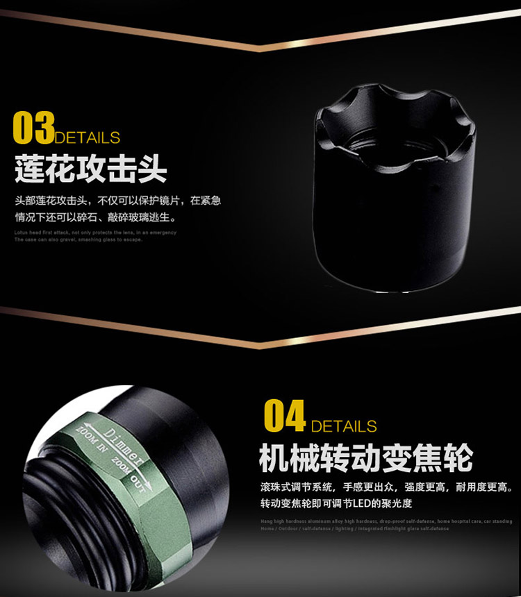 转动变焦环可调节LED的聚光度,以便达到最佳使用效果。