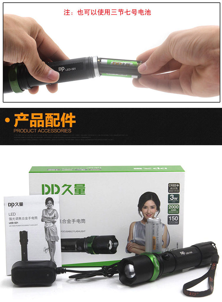 产品使用安全、无公害、无记忆、无污染、额定容量高达2000mAh的锂离子电池(18650型),使用寿命长,可循环充放电使用1000次以上。