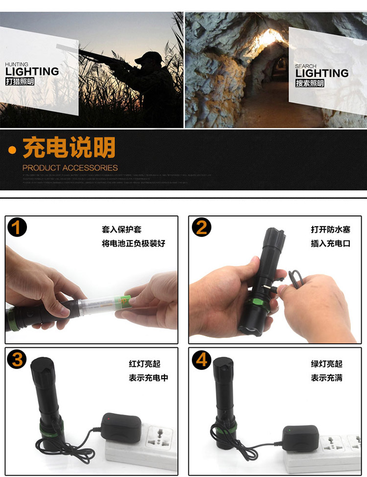 产品配置有充电器,采用专用充电管理智能芯片控制。