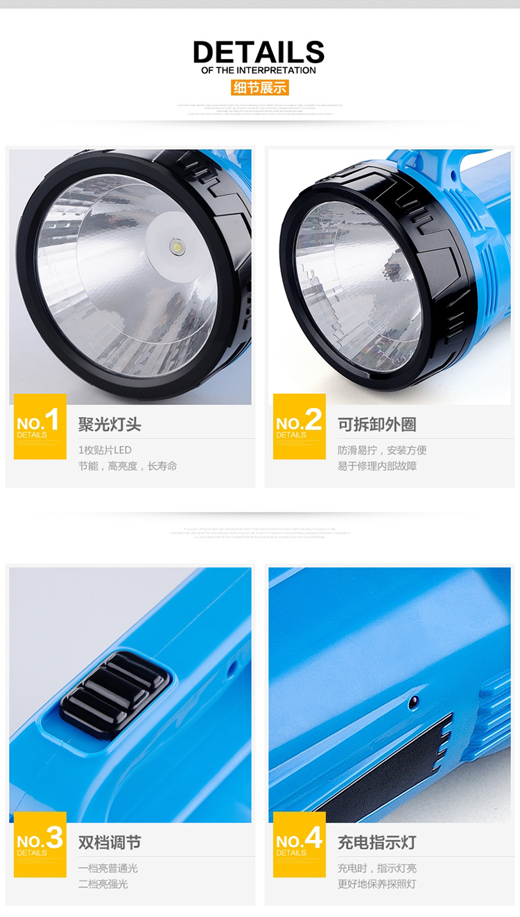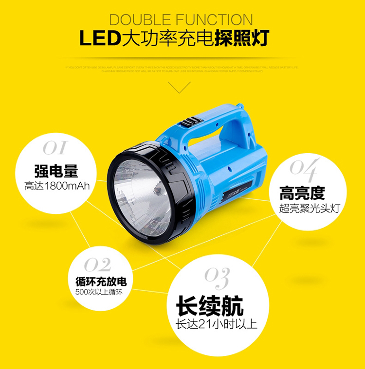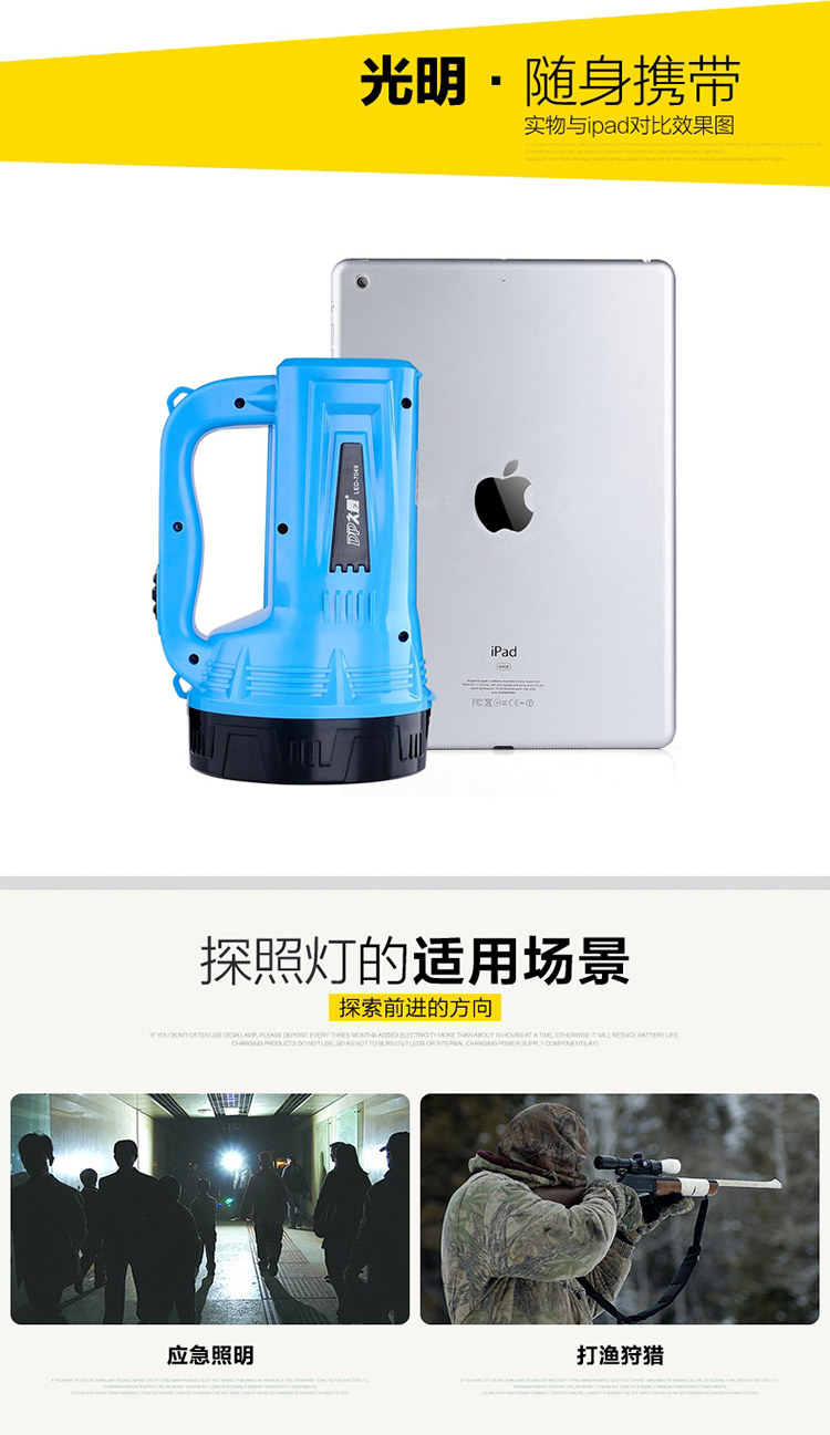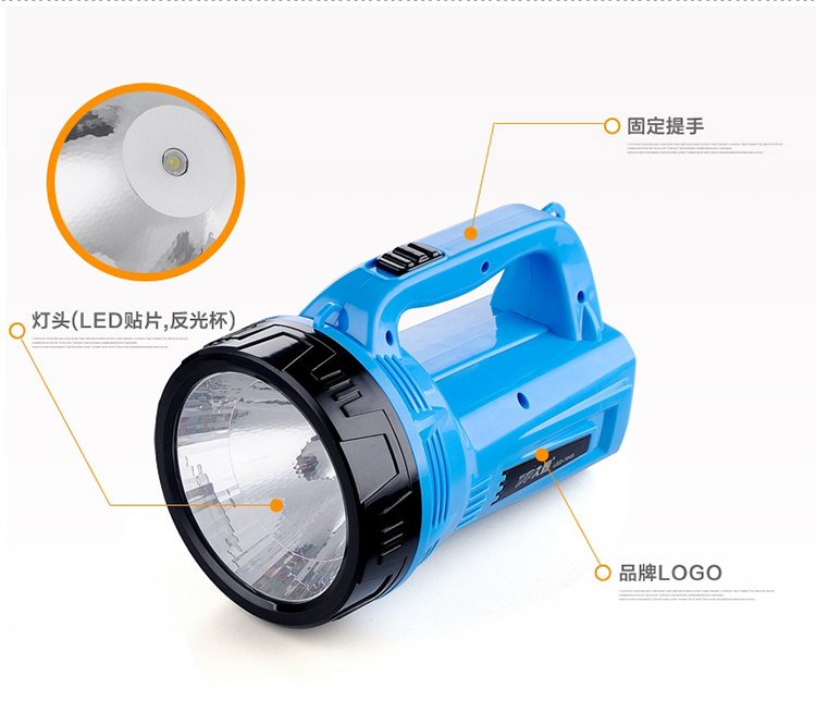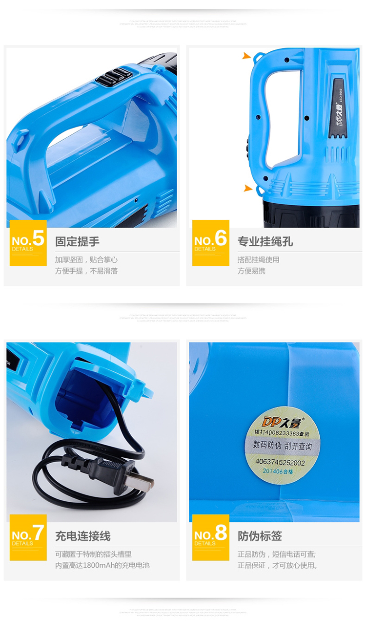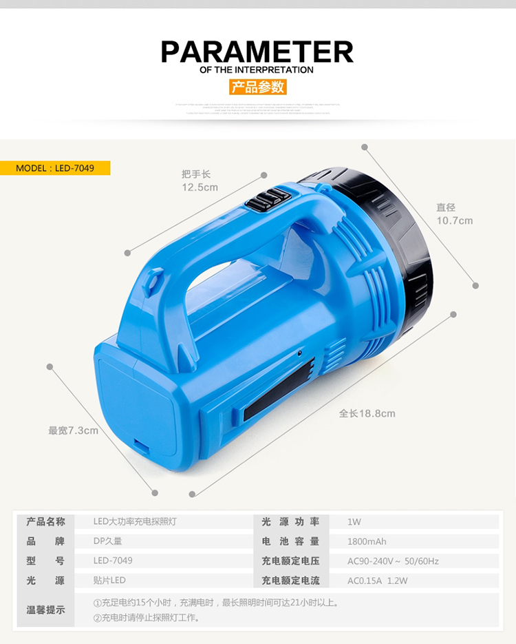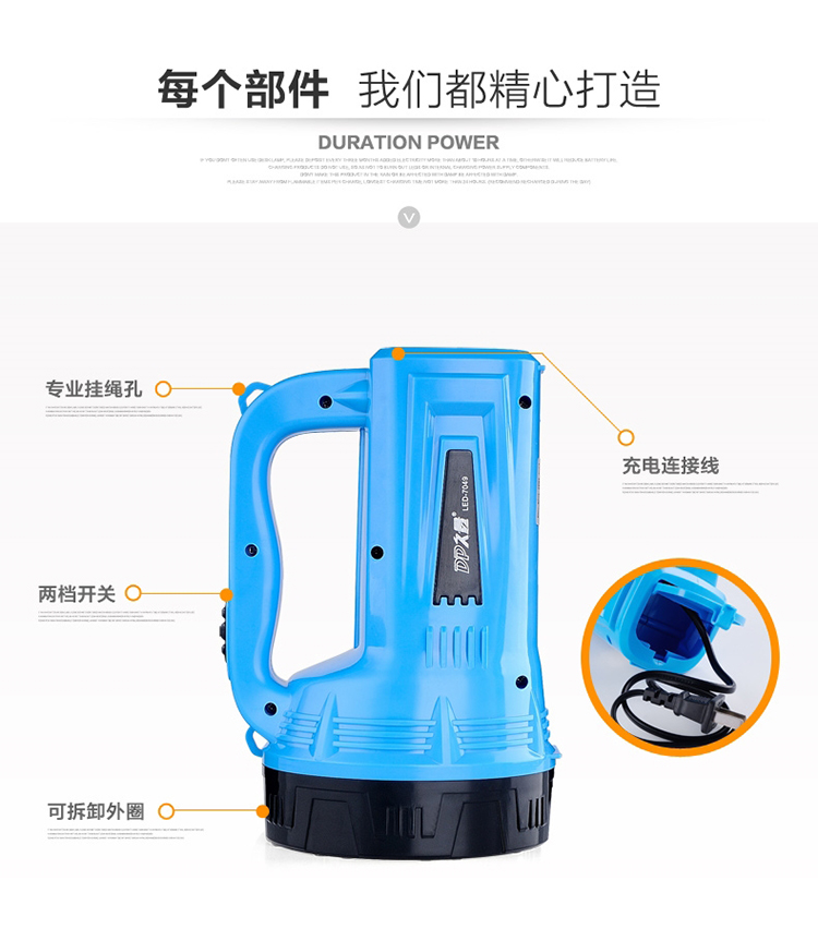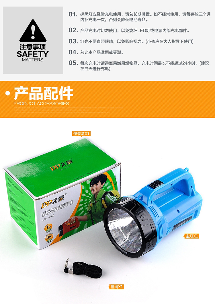 商品名称:久量/DP LED-7049 LED充电式探照灯高亮远射户外夜钓灯 手提灯