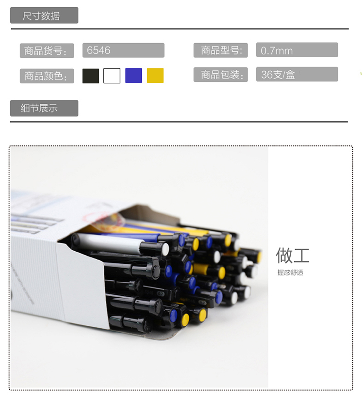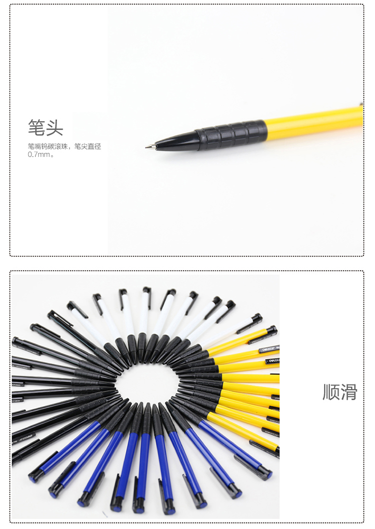 商品名称:得力 6546圆珠笔0.7mm子弹头 按动油笔原子笔36支/盒