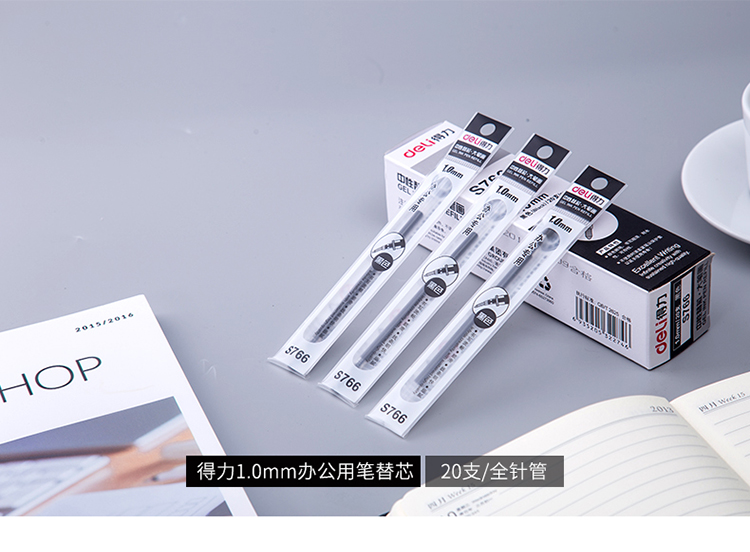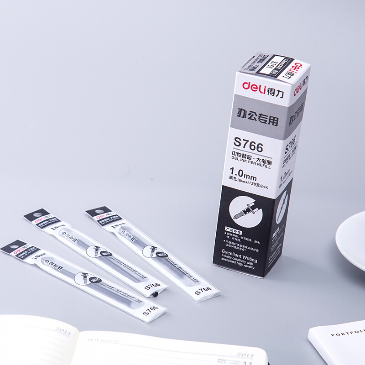 得力 S766中性笔芯1.0mm子弹头 水笔芯签字笔芯 20支/盒