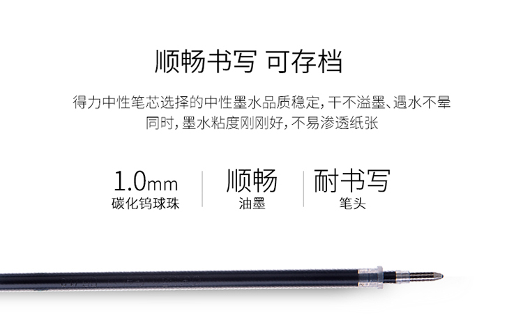 商品名称:得力 S766中性笔芯1.0mm子弹头 水笔芯签字笔芯 20支/盒