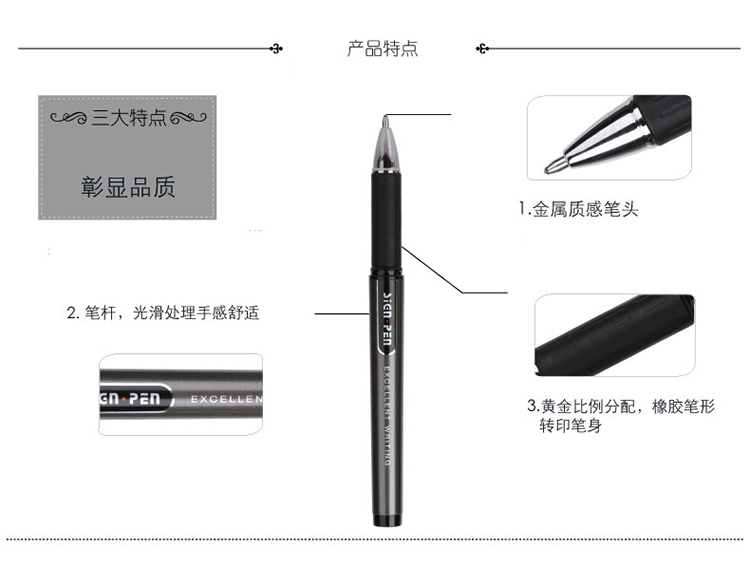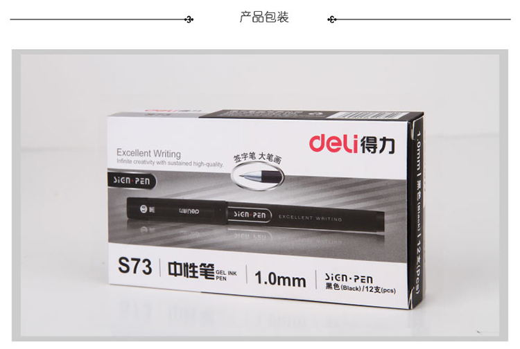 商品名称:得力 S73中性笔1.0mm子弹头 经典办公水笔签字笔 12支/盒