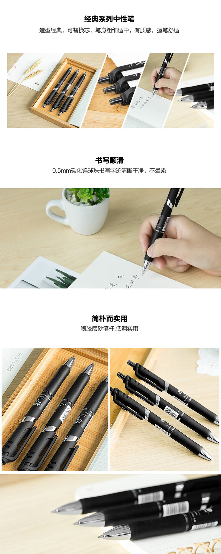 商品名称:得力(deli) 中性笔签字笔 0.5mm黑 磨砂笔杆 12支 S10 单位:盒