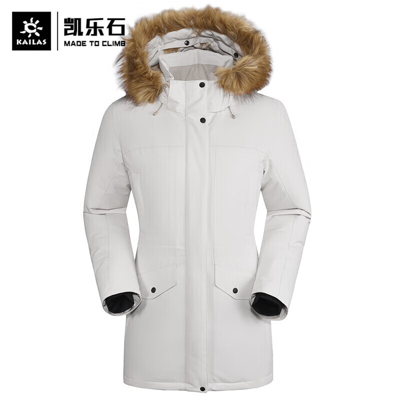 KAILAS女装秋冬户外防寒 长款加厚毛领羽绒外套 KG2033603 浅米色 (尺码:XS/S/M/L/XL/2XL) 单位:件