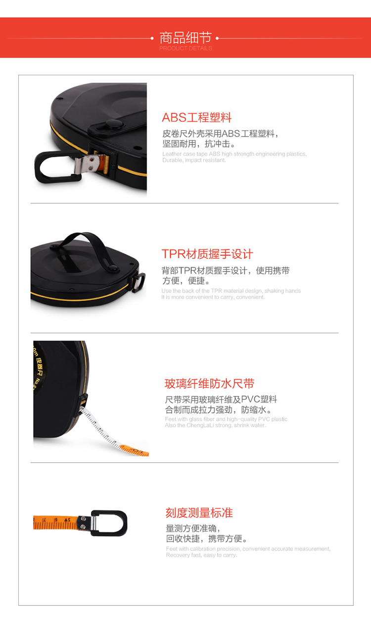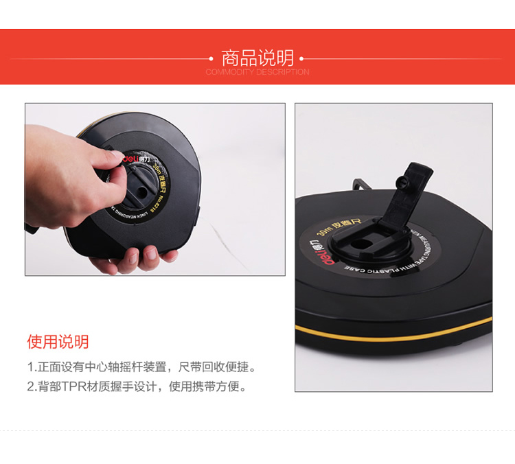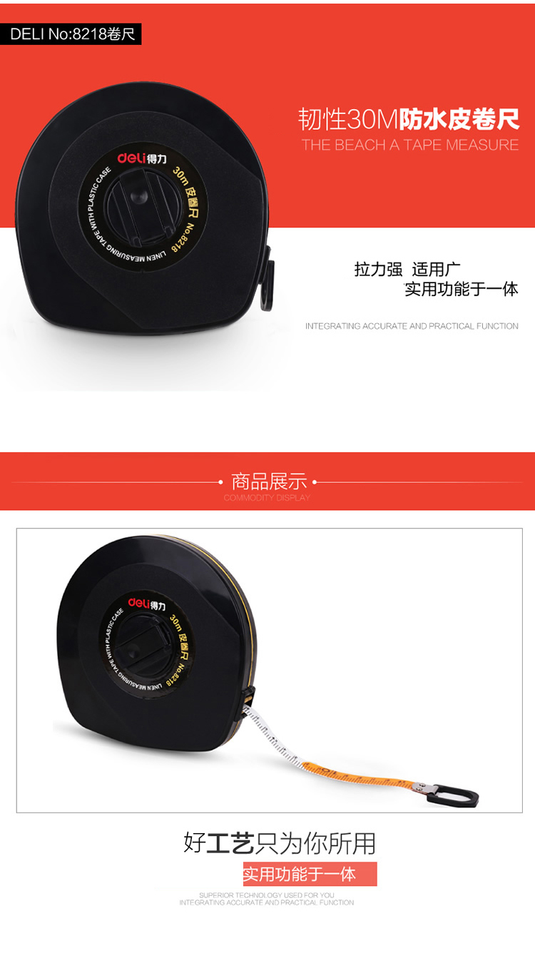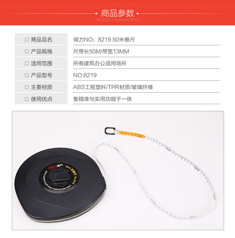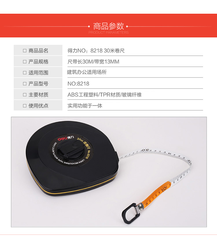 商品名称:得力 8218 8219皮卷尺 30米50米玻璃纤维尺仪尺测量尺工程尺