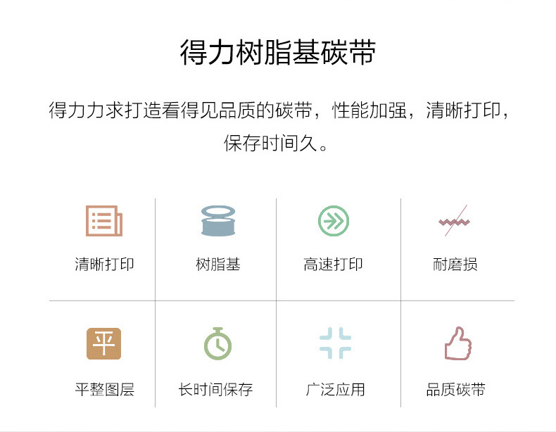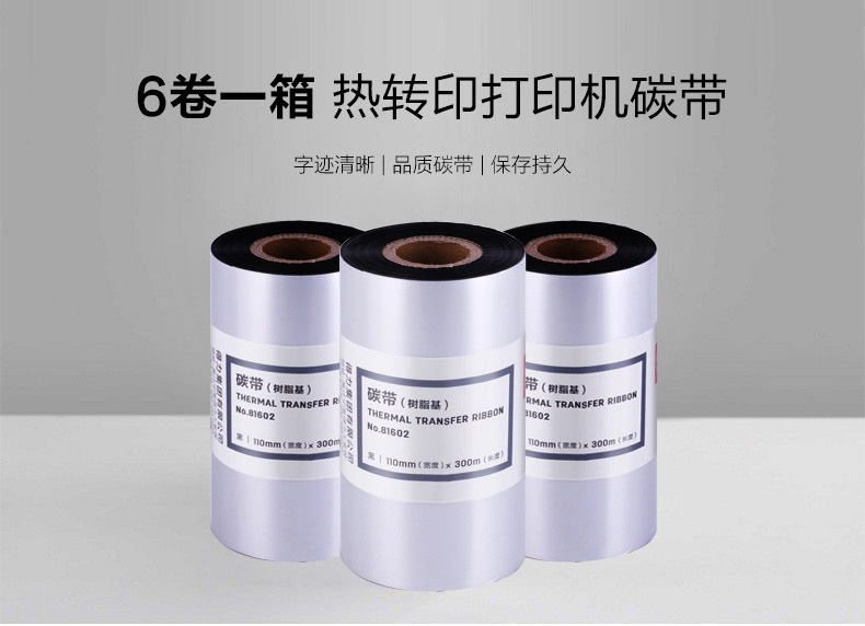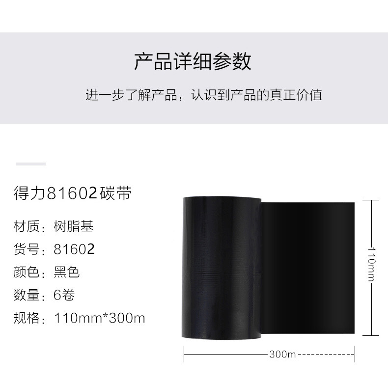 商品名称:得力 81602 全树脂基碳带110mm*300m标签打印机耗材色带珠宝标签条码PET亚银纸PVC合成纸防刮不干胶打印碳带