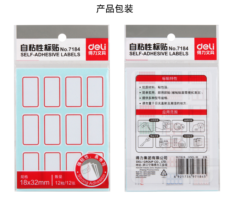 商品名称:得力 7184 18*32mm 标贴纸 口取纸
