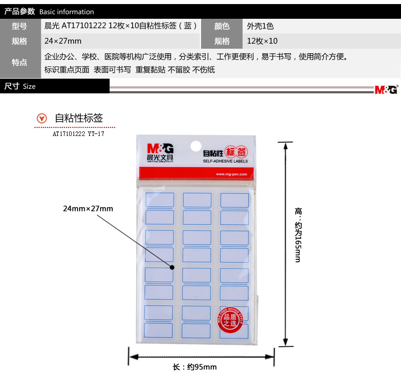 商品名称:晨光 YT-17 12枚*10张自粘性标签