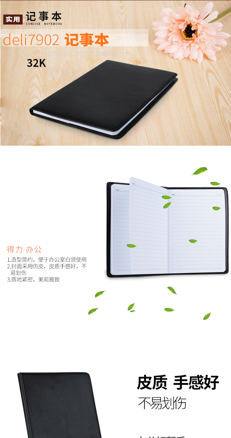 商品名称:得力 笔记本7902 商务皮质记事本 会议记录本 日记本 商务办公本子