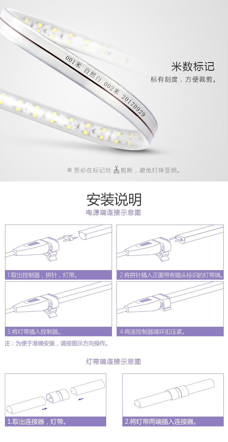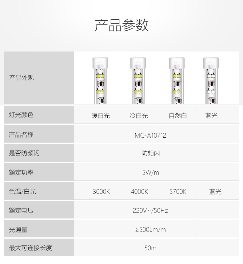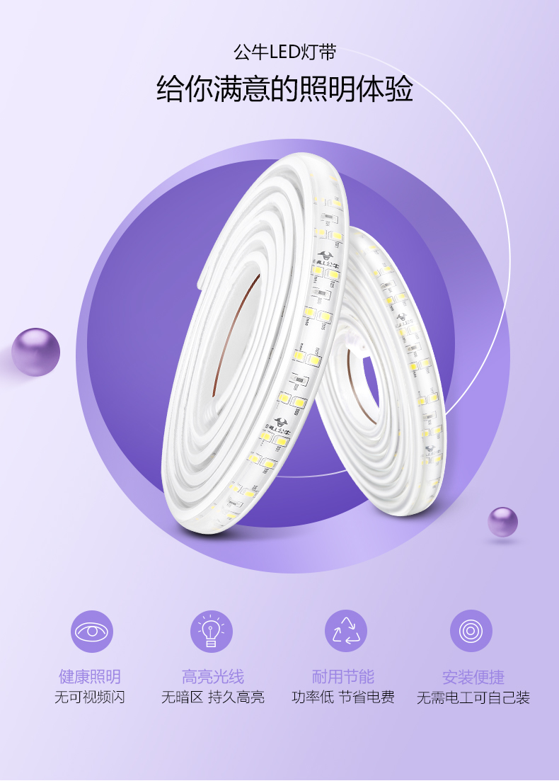 商品名称:公牛led灯带灯条家用客厅餐厅吊顶长条线灯照明220v三色双排防水 (普通灯带)电源线 单位:米
