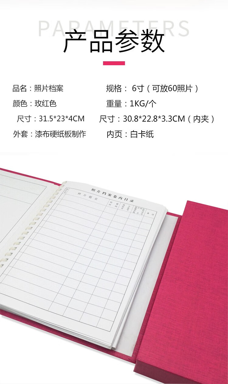 商品名称:盛泰档案(ST)照片档案4R相册60张照片玫红色活页资料册插页式收纳册行业标准 照片档案 单位:个