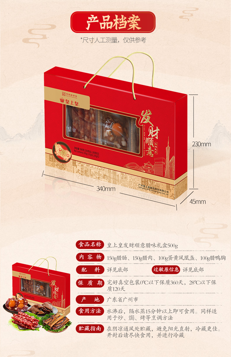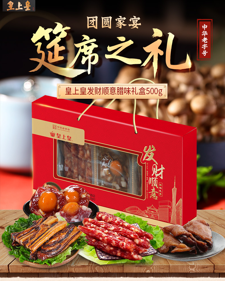 商品名称:皇上皇 中华老字号 发财顺意广式腊味礼盒500g