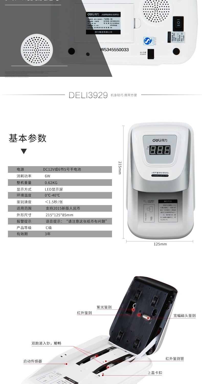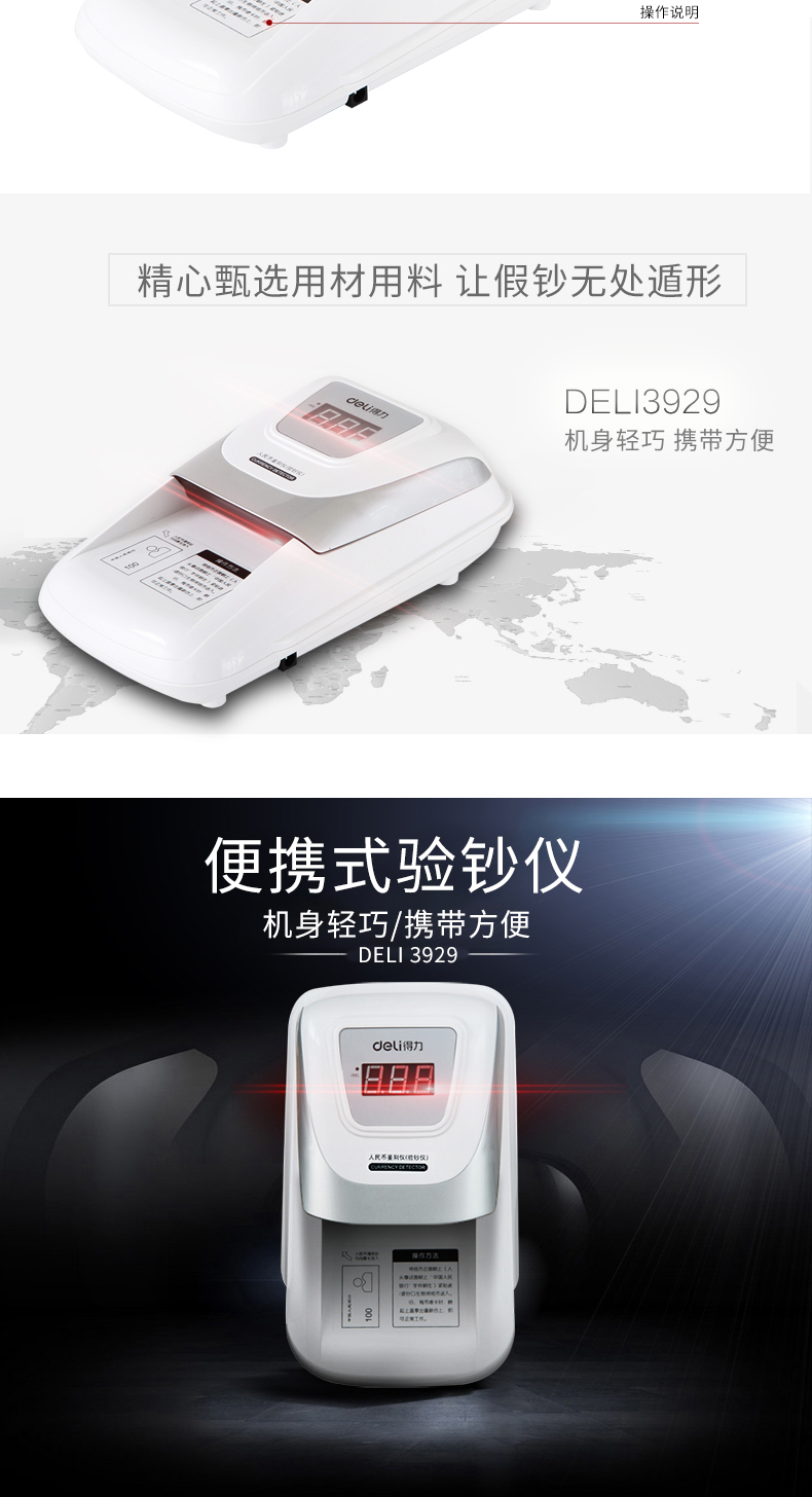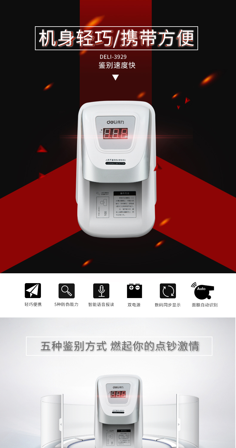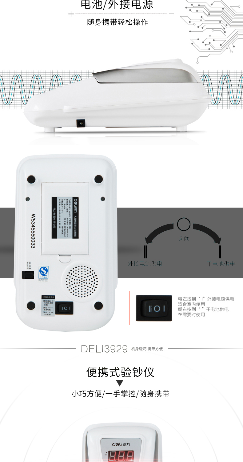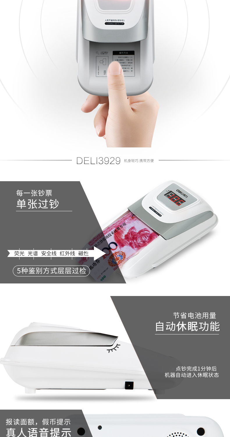 商品名称:得力 人民币验钞仪3929 小型便携式智能语音验钞机点钞机