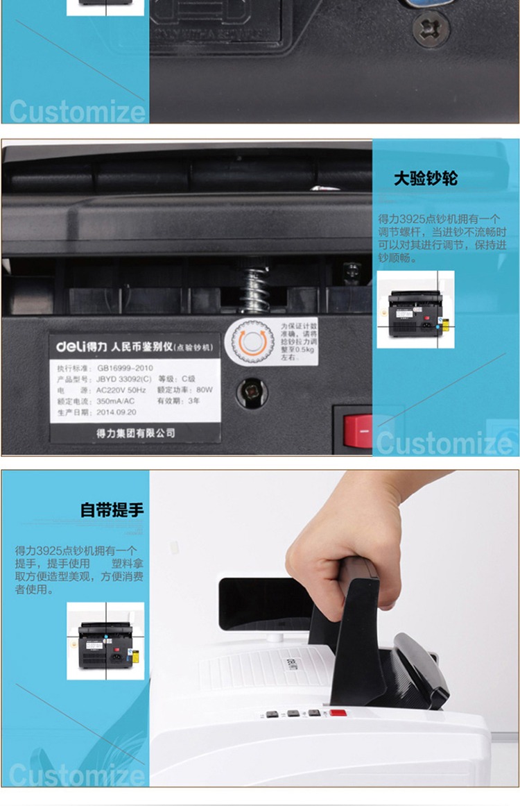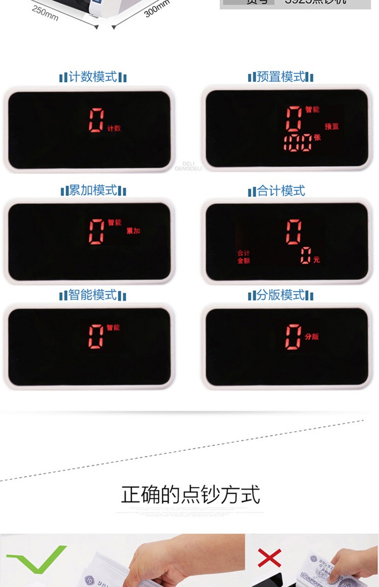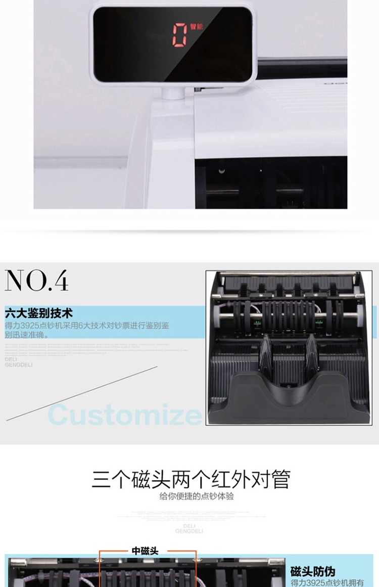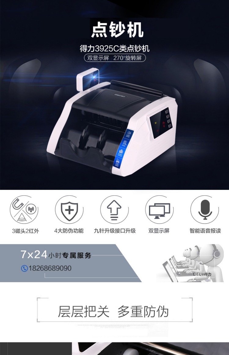商品名称:得力 3925点钞机验钞机智能语音混点支持新版人民币双屏