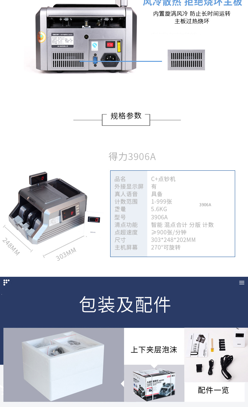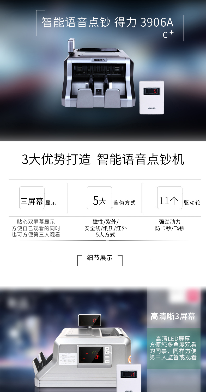 商品名称:得力 全智能点钞机 智能点钞机/得力验钞机 银行专用3906A