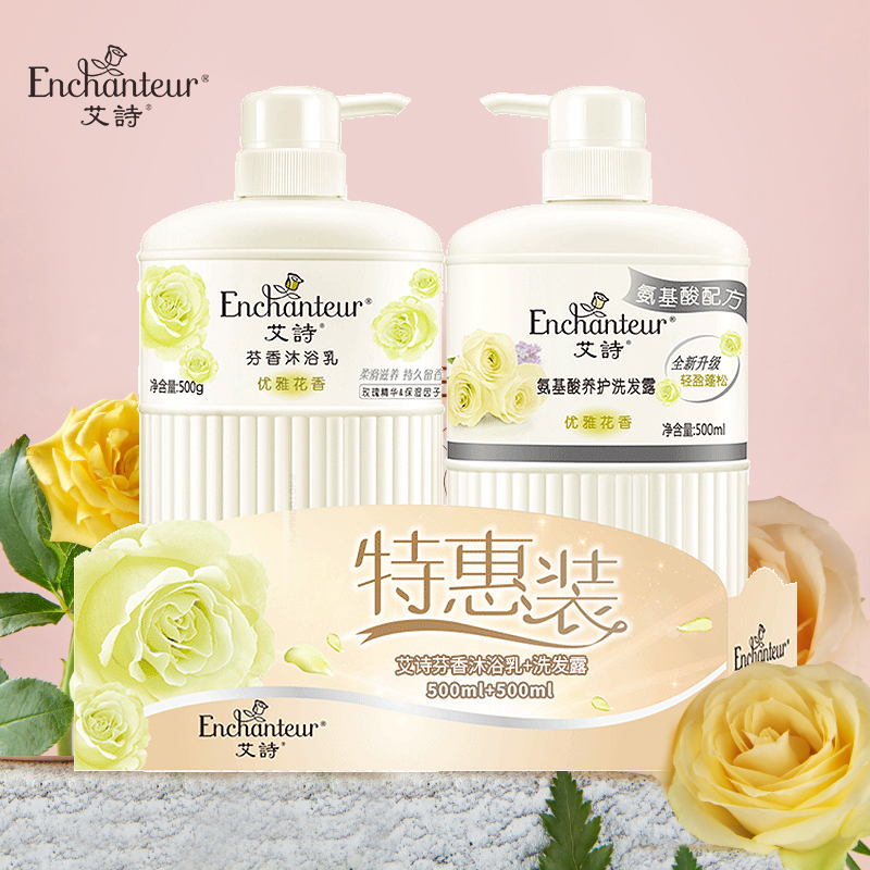型号:艾诗(Enchanteur)沐浴露洗发香氛套装(优雅沐浴500ml+优雅洗发500ml)