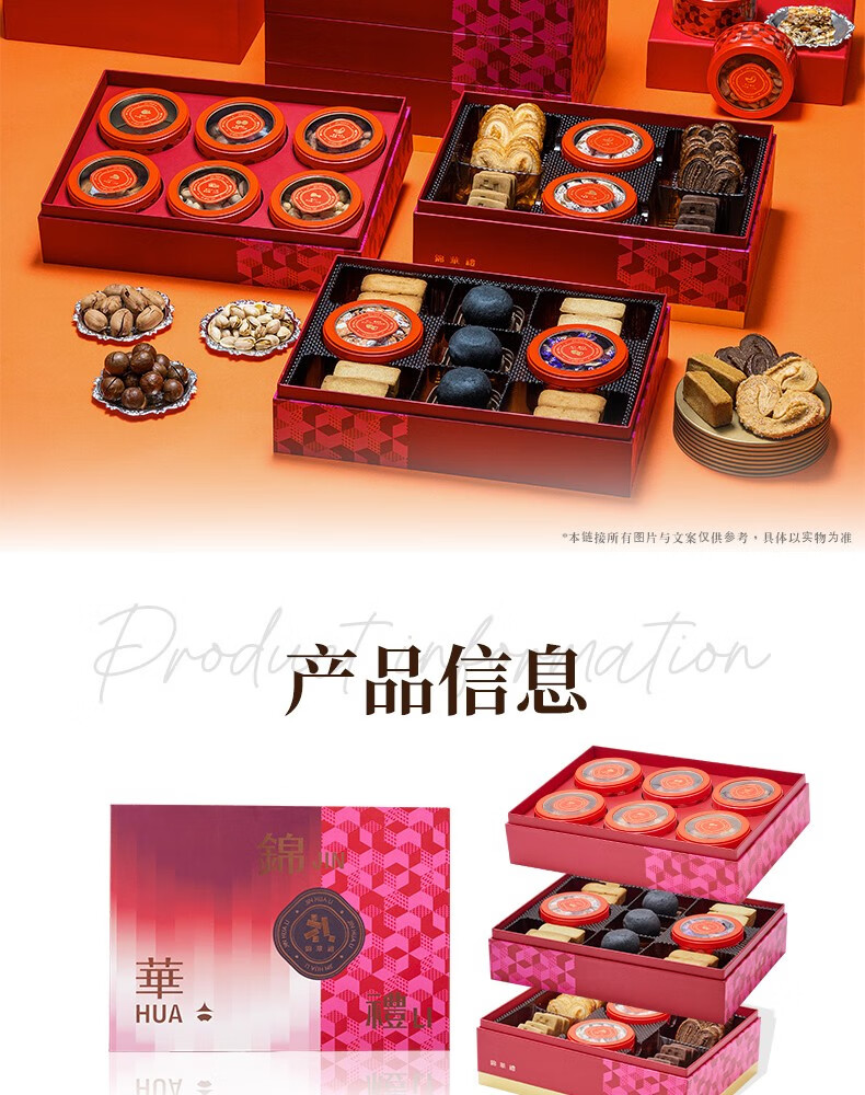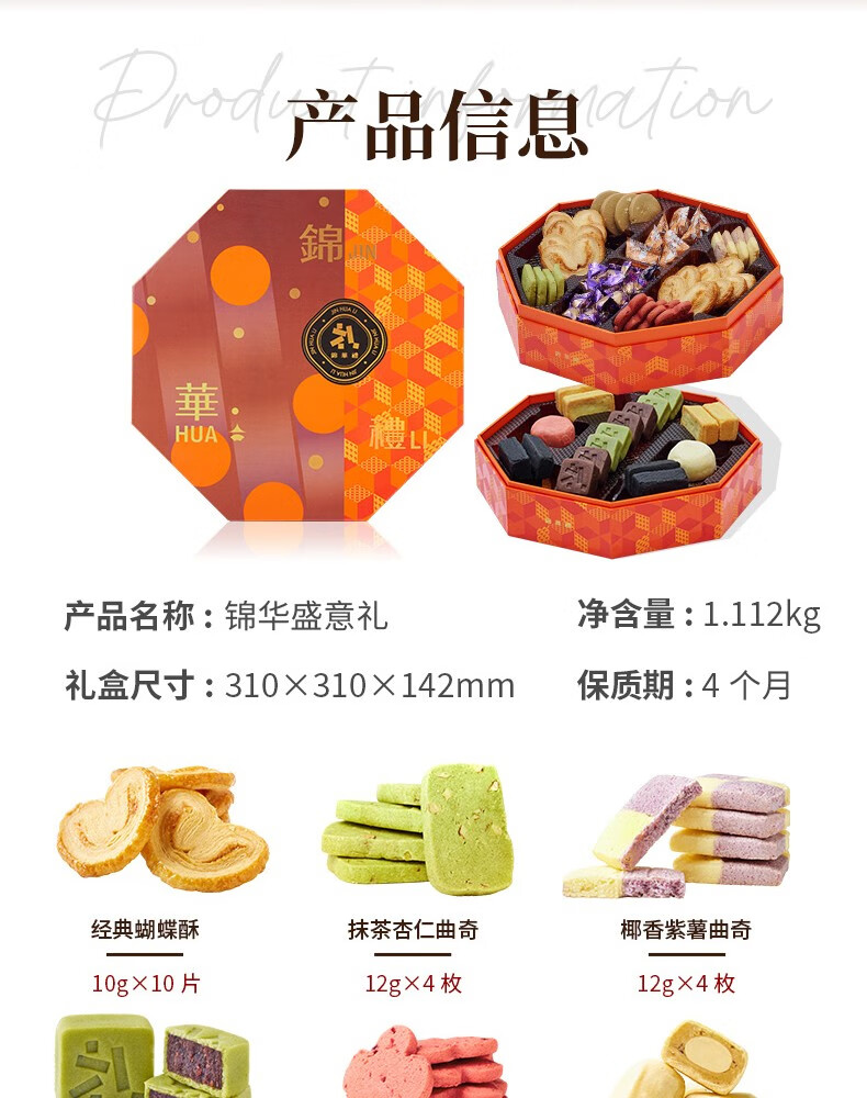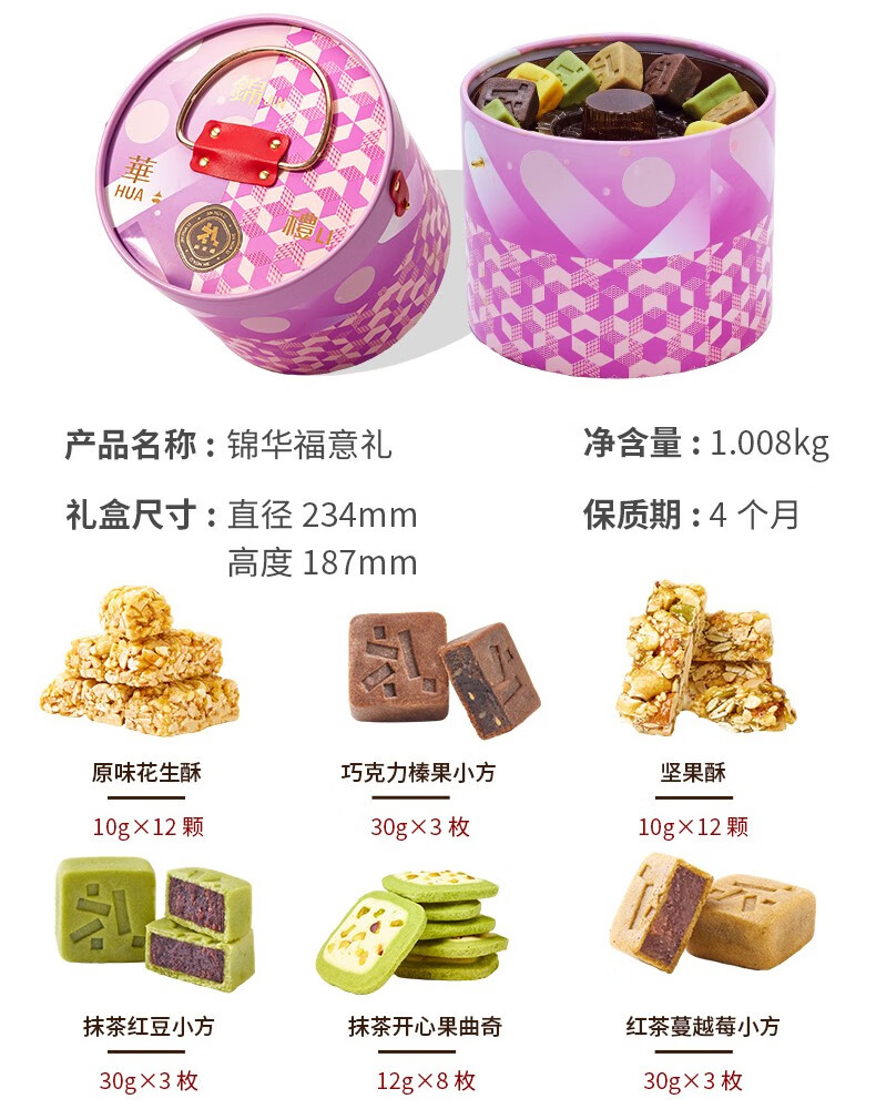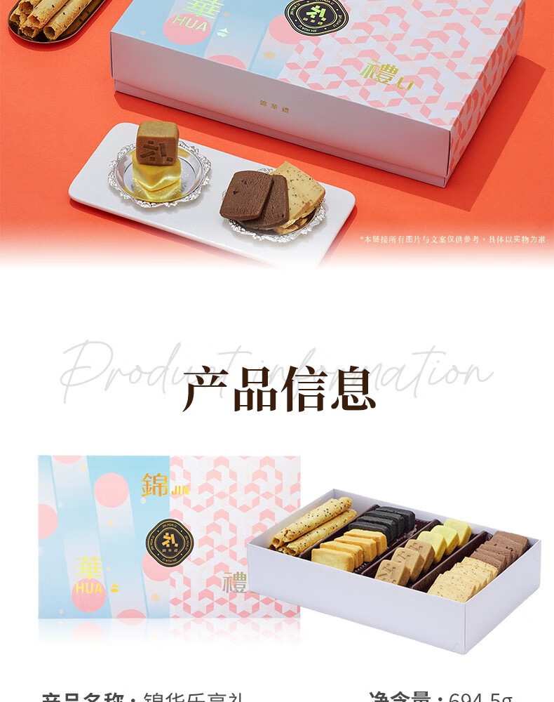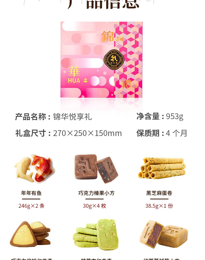 商品名称:锦华礼糕点礼盒年货礼盒点心休闲零食过新年饼干礼盒送礼送长辈食品 混合口味 500g 西饼什锦礼盒 单位:盒