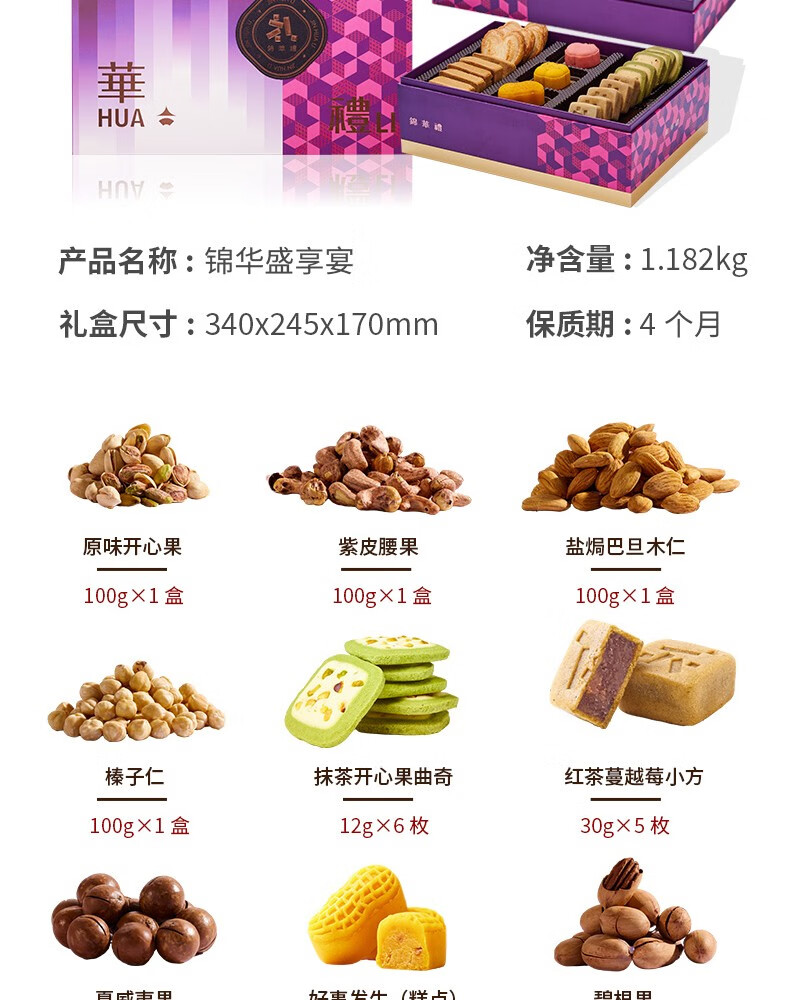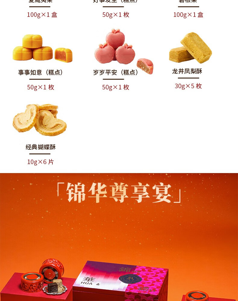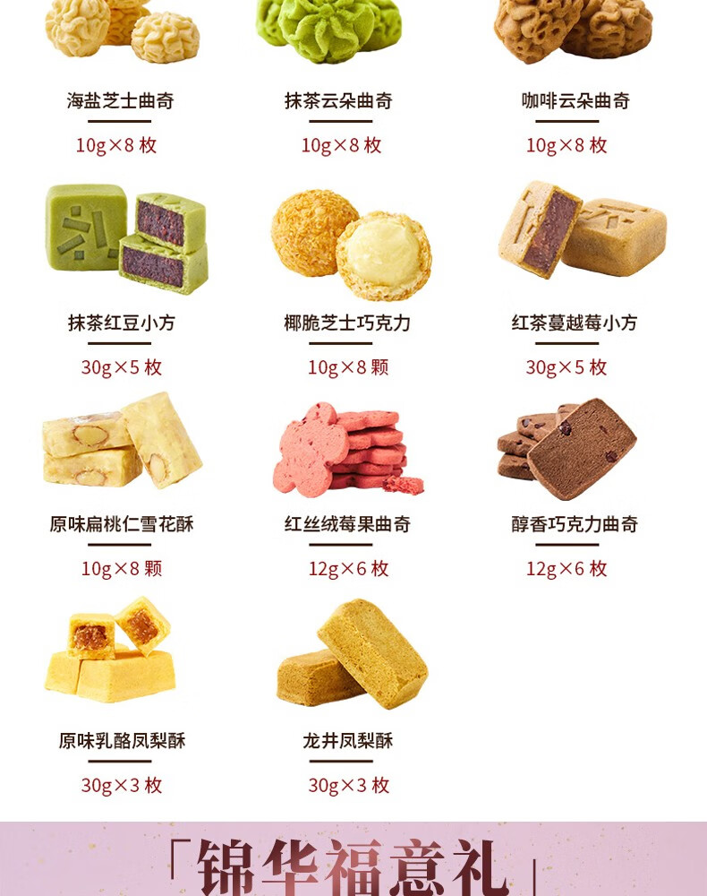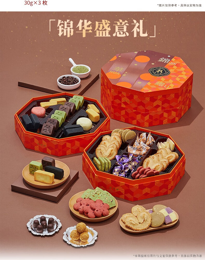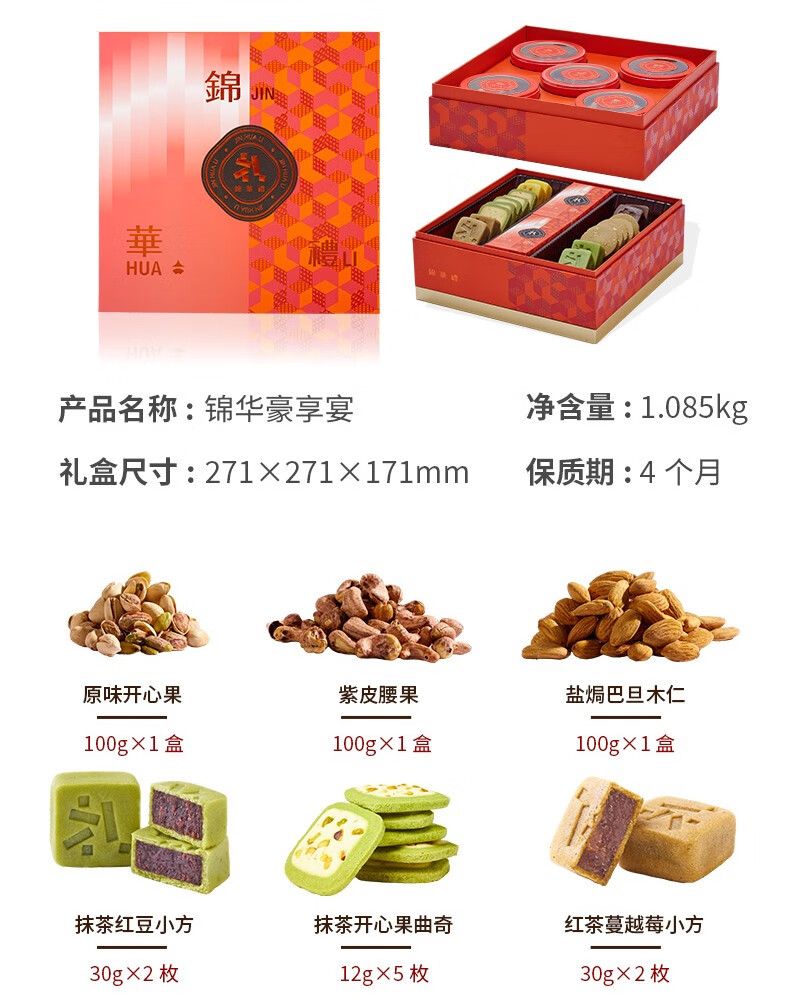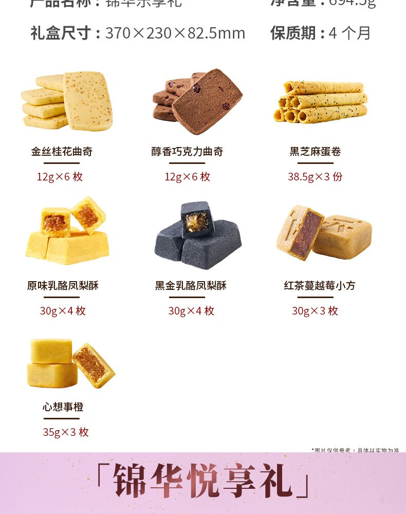 商品名称:锦华礼糕点礼盒年货礼盒点心休闲零食过新年饼干礼盒送礼送长辈食品 混合口味 500g 西饼什锦礼盒 单位:盒