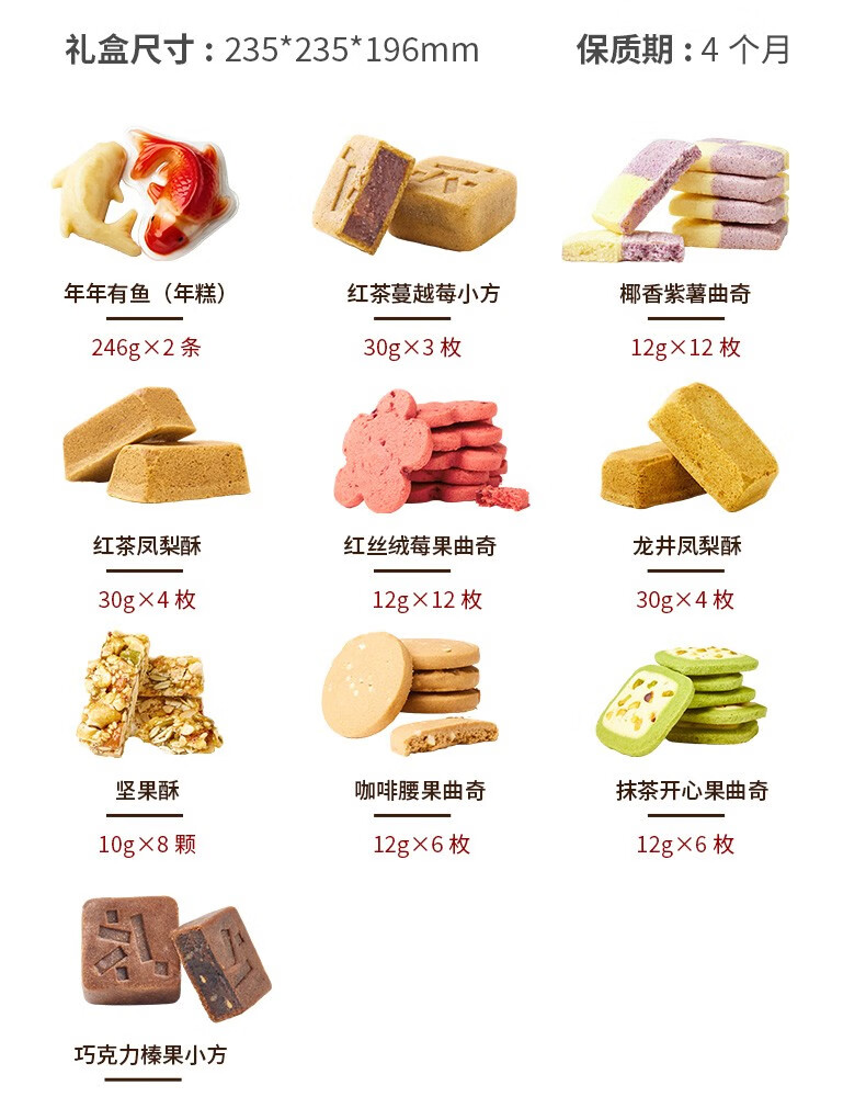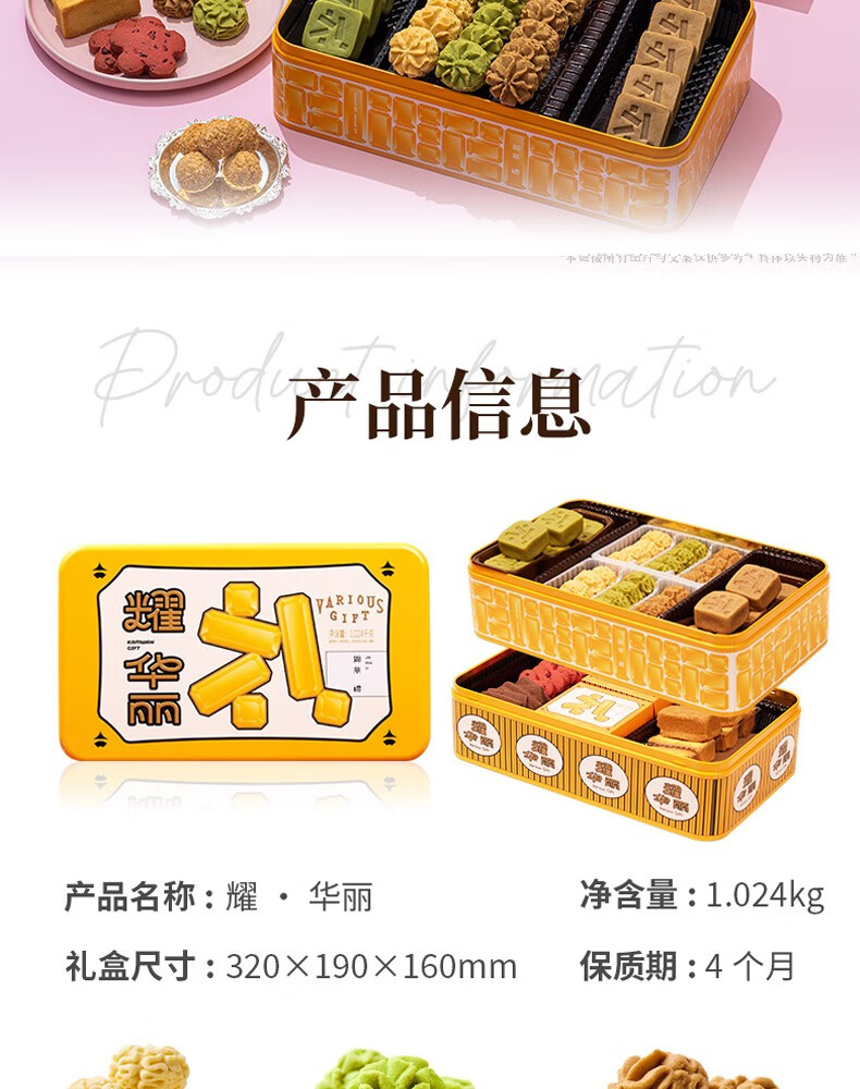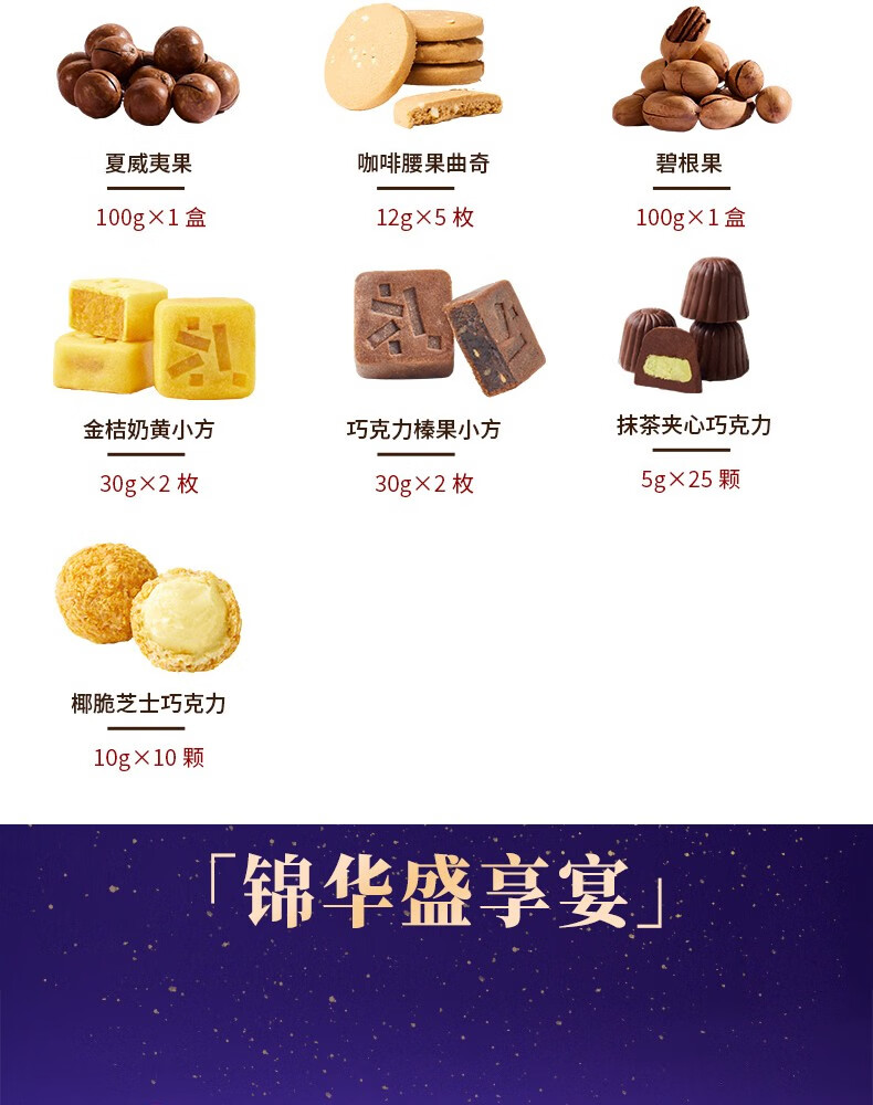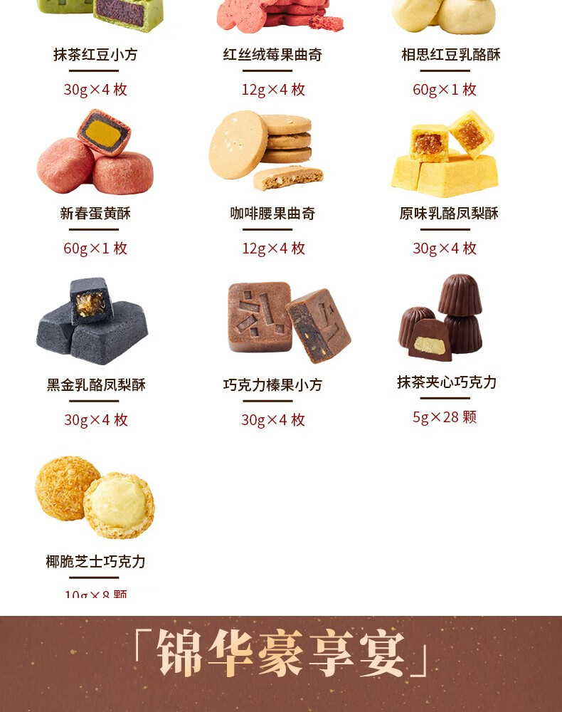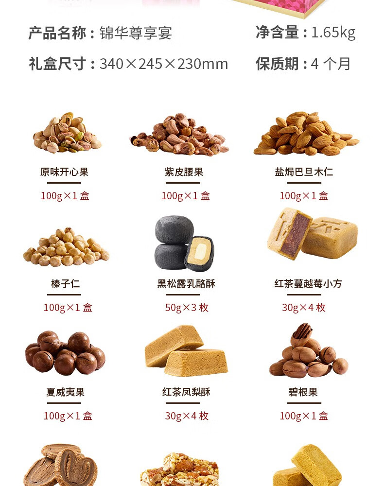 商品名称:锦华礼糕点礼盒年货礼盒点心休闲零食过新年饼干礼盒送礼送长辈食品 混合口味 500g 西饼什锦礼盒 单位:盒