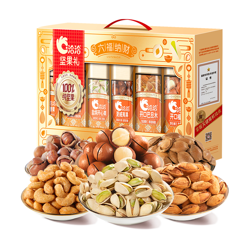 商品名称:洽洽纯坚果礼盒罐装1265g/6罐高端送礼开心果夏威夷果榛子干果年货 单位:盒