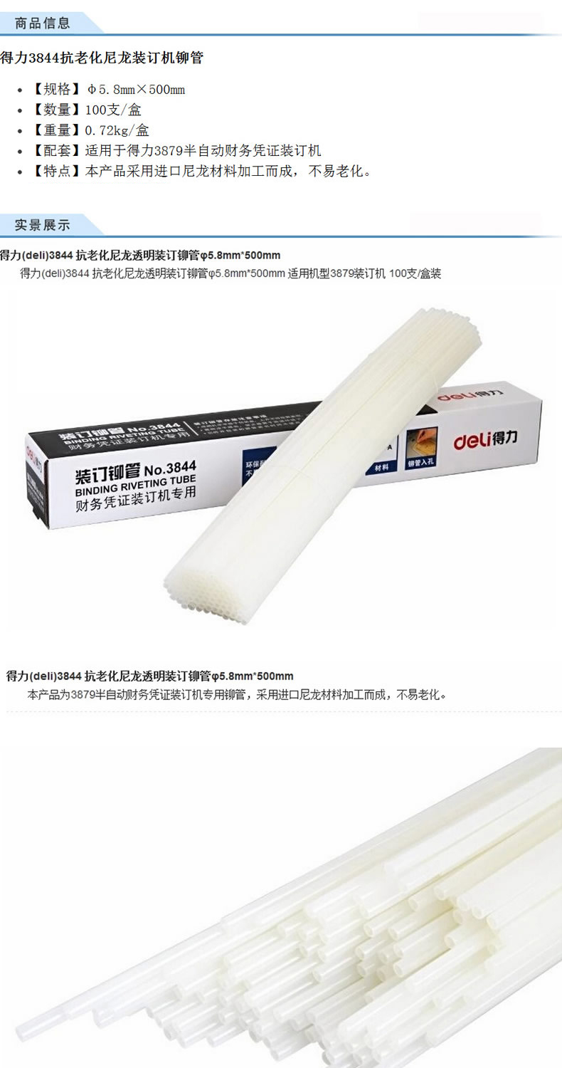 商品名称:得力 铆管财务凭证装订机配套铆管3853/3844/3847/3832/3858热熔管
