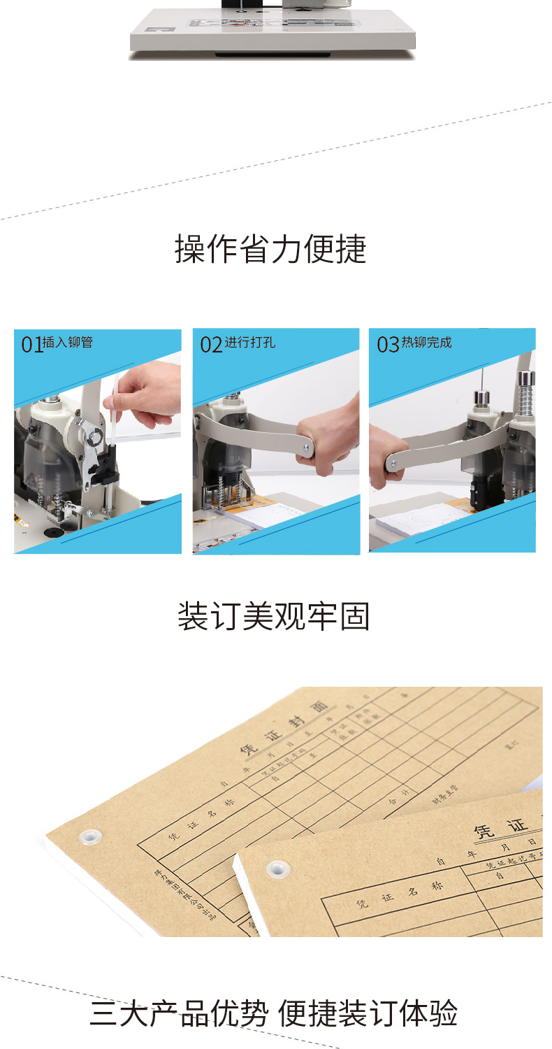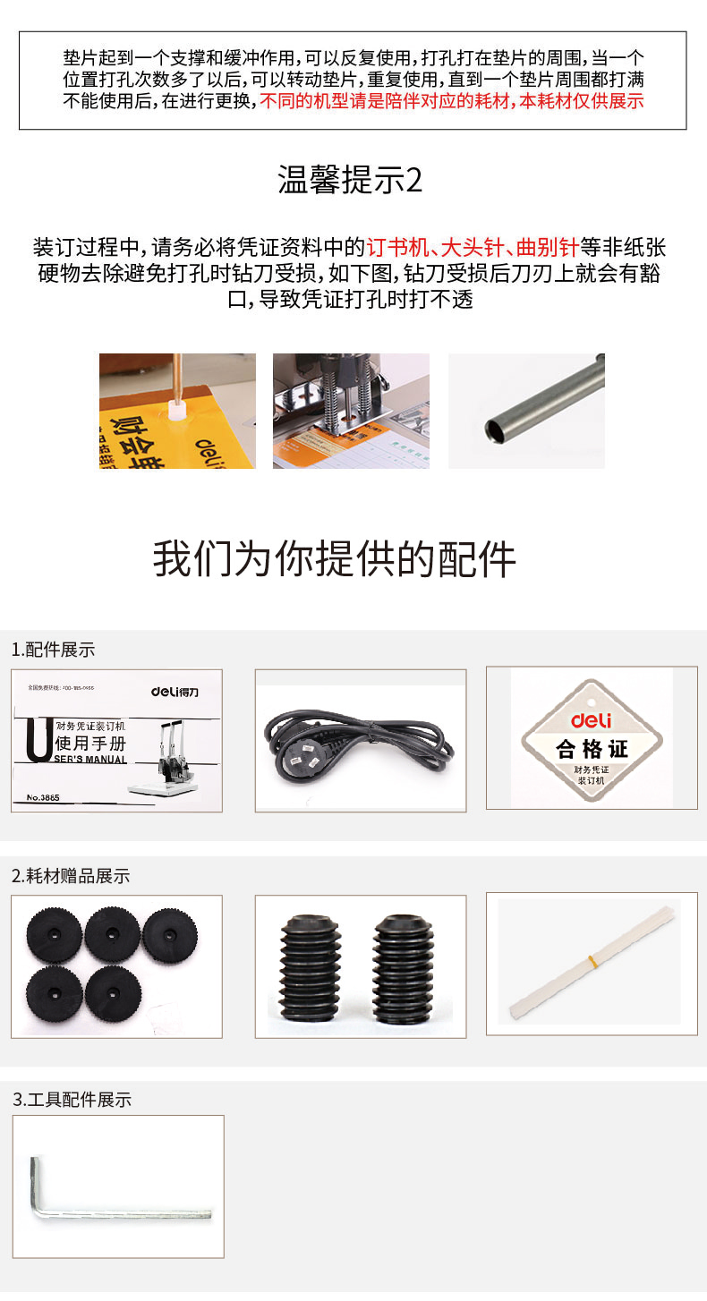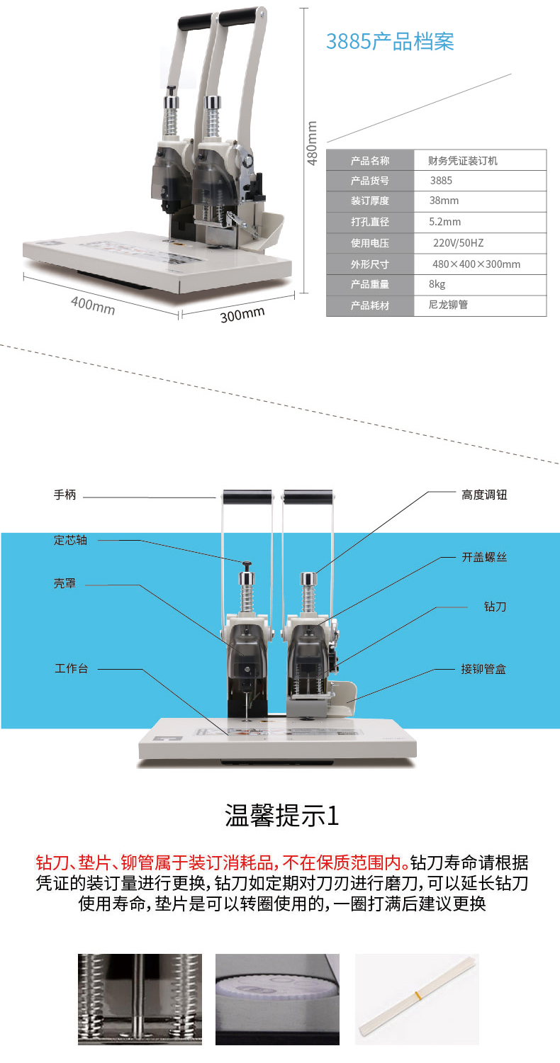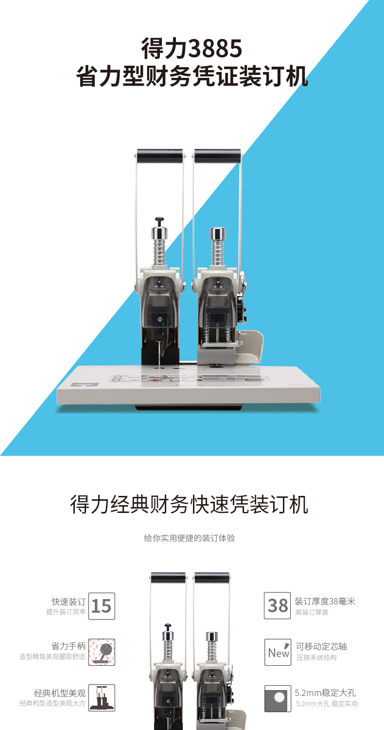 商品名称:得力 3885财务装订机 电动 铆管装订机 会计打孔 凭证装订机