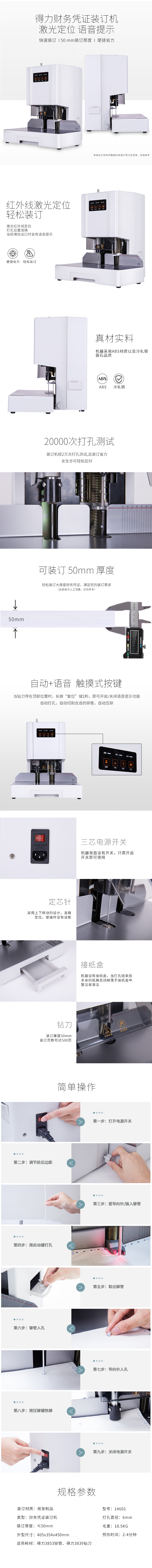 商品名称:得力 14601全自动打孔凭证装订机电动机财务会计热熔胶铆管胶装机