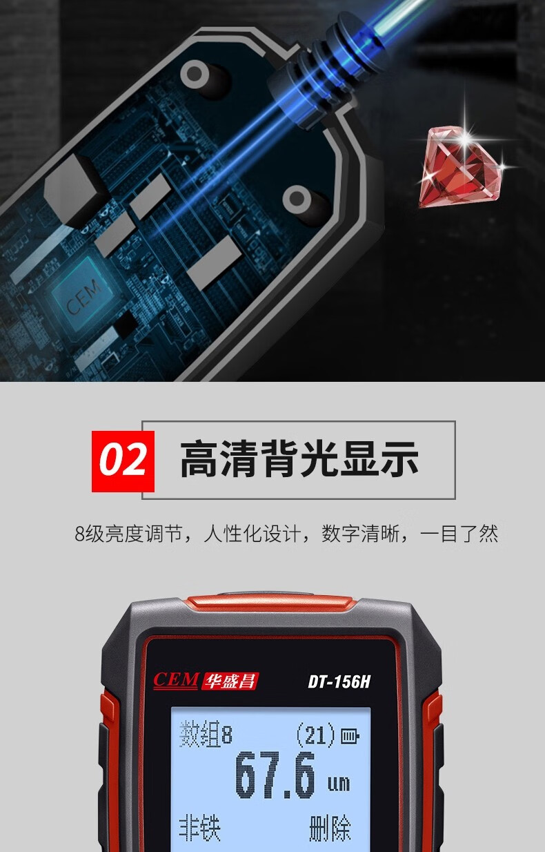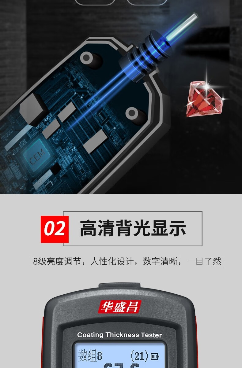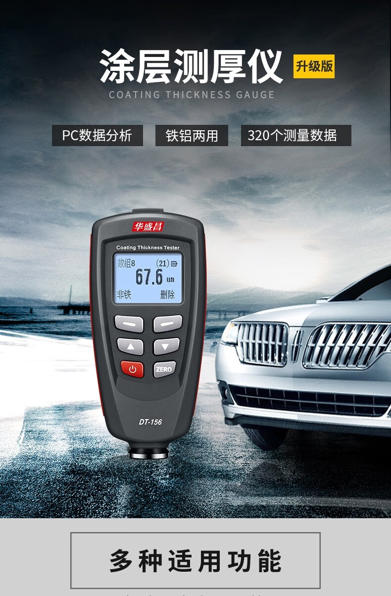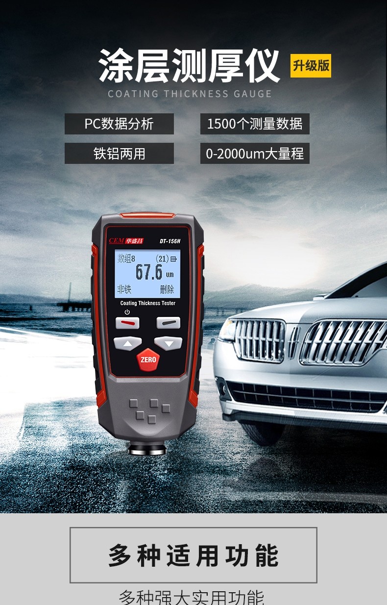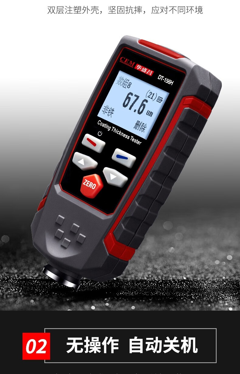 商品名称:华盛昌(CEM)涂层测厚仪 漆膜仪 高精度油漆厚度汽车漆面检测仪涂镀层测厚仪 DT-156中文版 单位:台