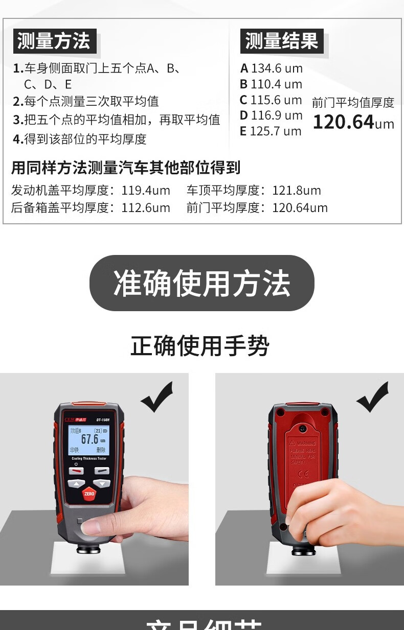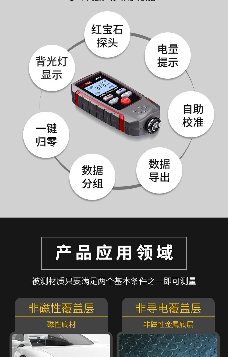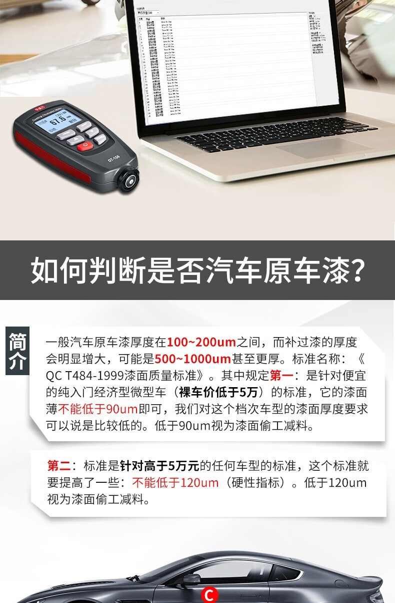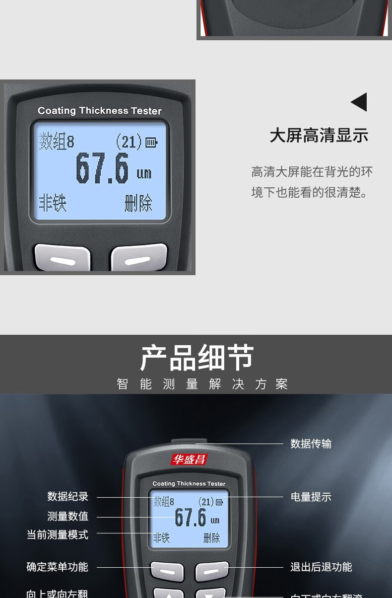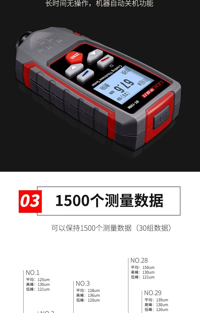 商品名称:华盛昌(CEM)涂层测厚仪 漆膜仪 高精度油漆厚度汽车漆面检测仪涂镀层测厚仪 DT-156中文版 单位:台