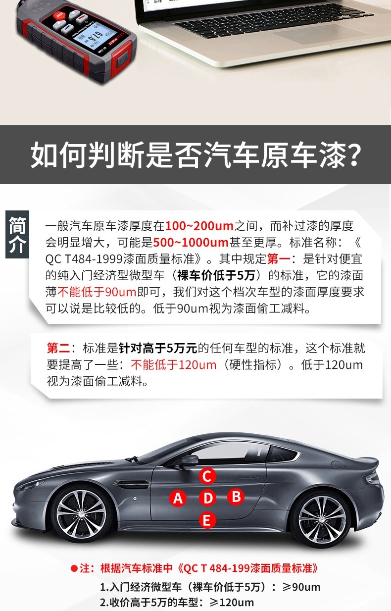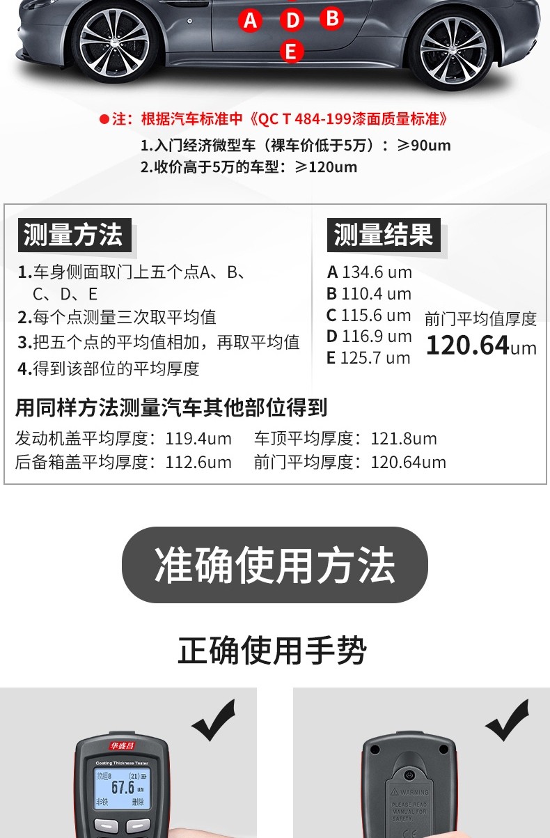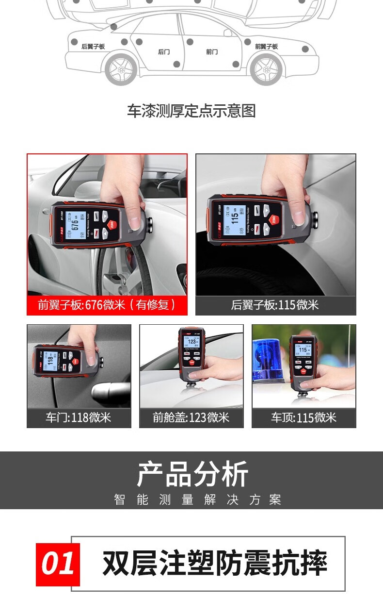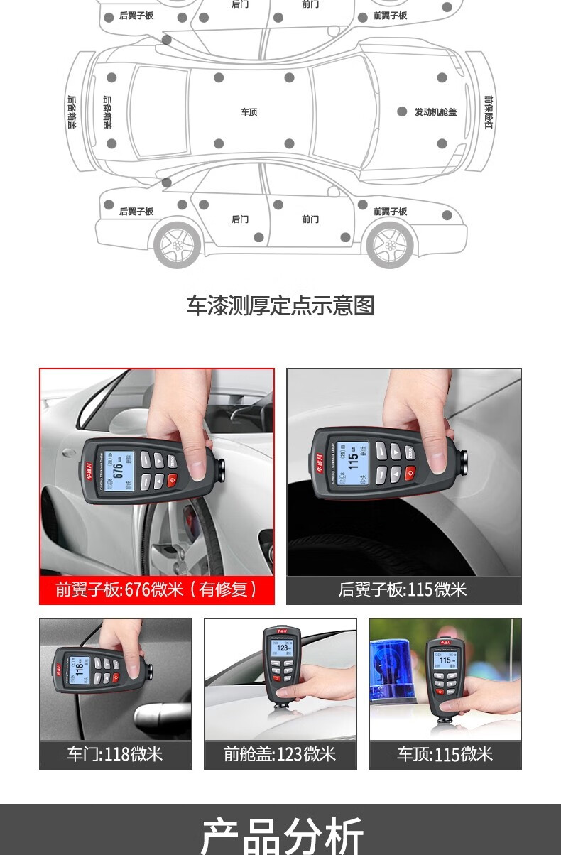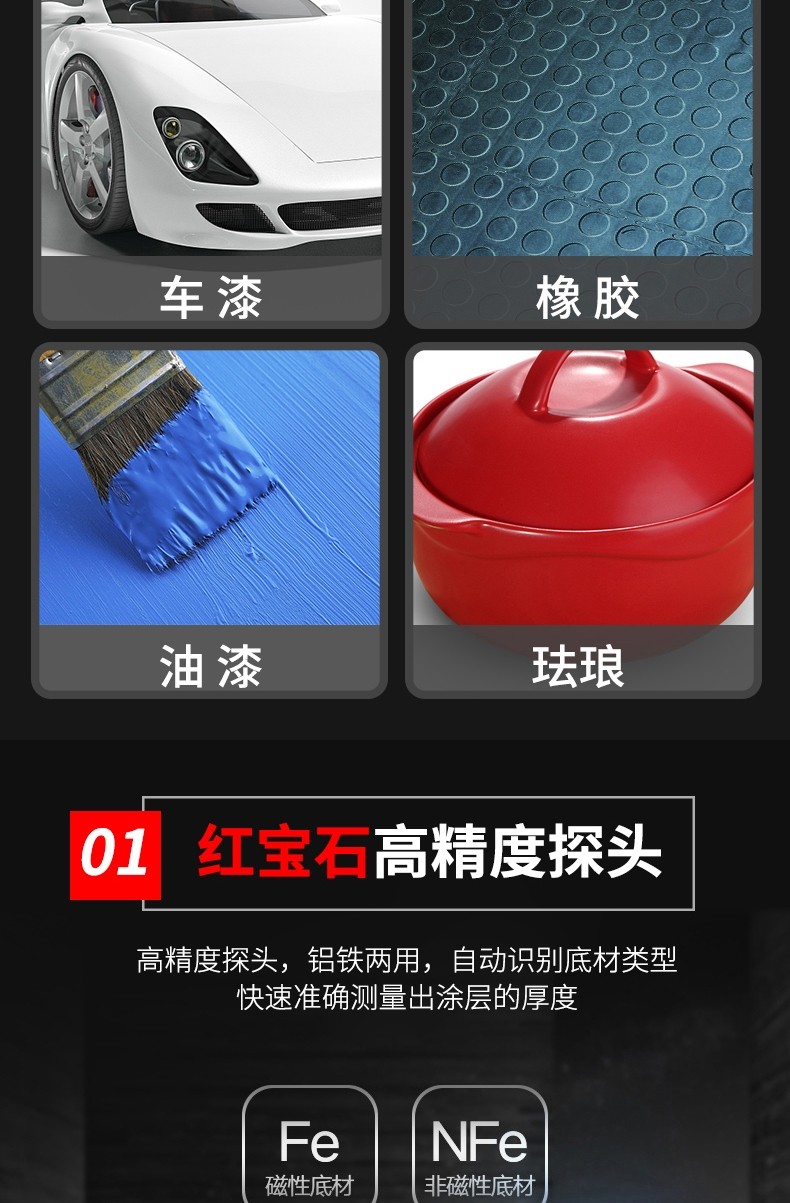 商品名称:华盛昌(CEM)涂层测厚仪 漆膜仪 高精度油漆厚度汽车漆面检测仪涂镀层测厚仪 DT-156中文版 单位:台