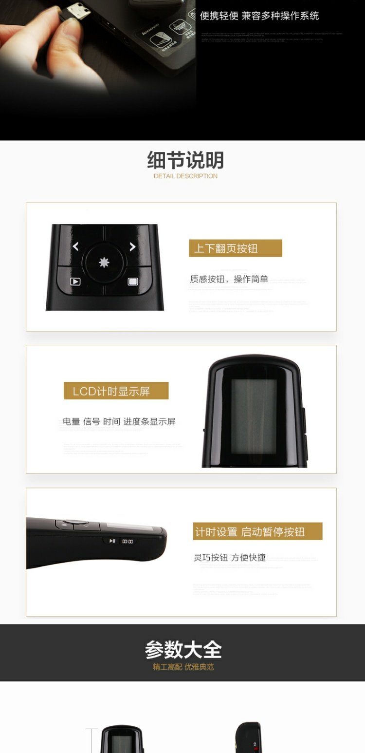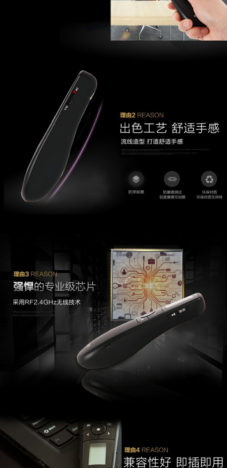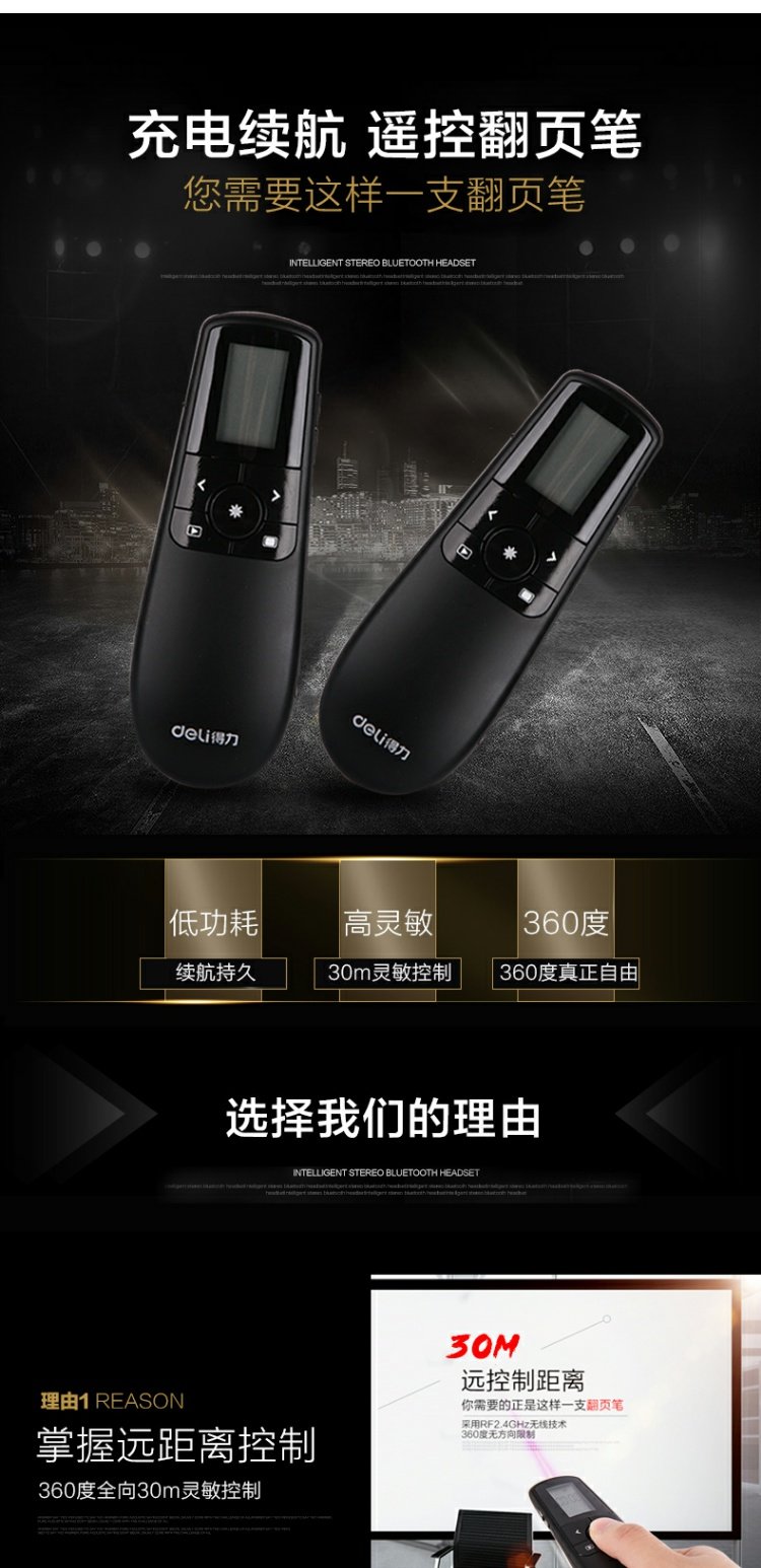 商品名称:得力 2804显示屏翻页笔 绿色激光 无线商务激光笔 USB 教学笔