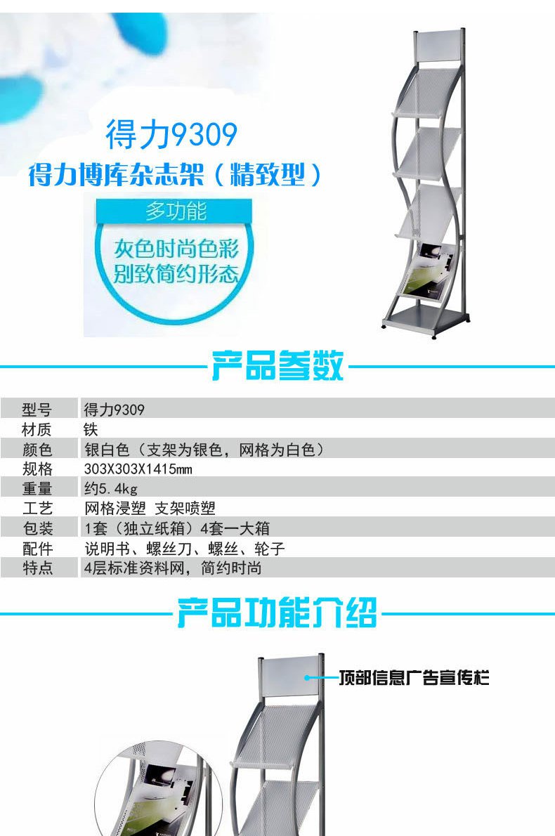 商品名称:得力 9309杂志架报刊架书报架落地A4图册宣传单页彩页资料展示架子
