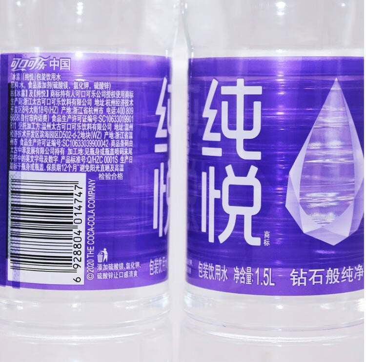 商品名称:可口可乐(Coca-Cola)冰露纯悦饮用水家庭用水 1.5L*12 纯悦饮用水1.5L*12瓶整箱装 单位:箱