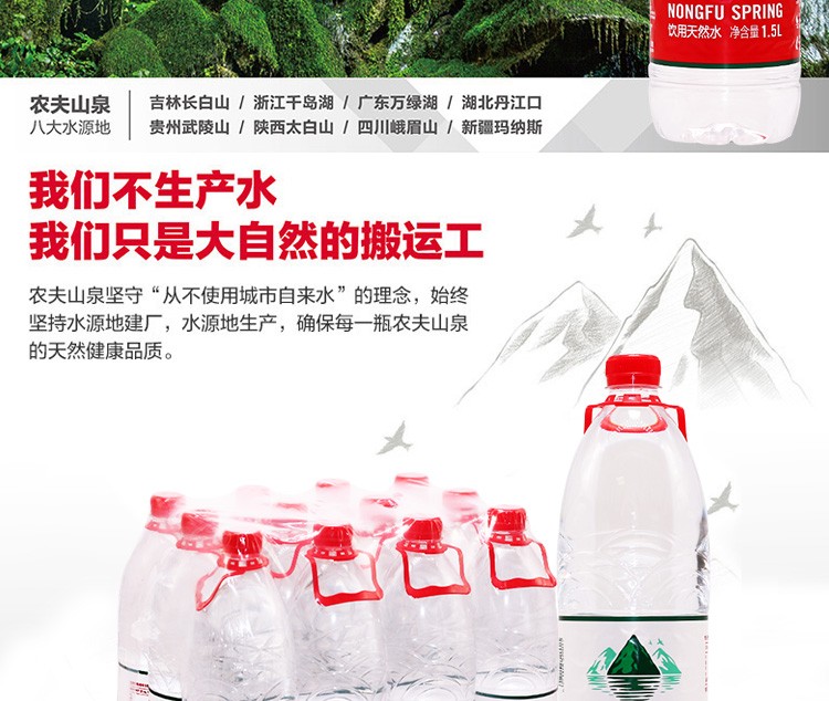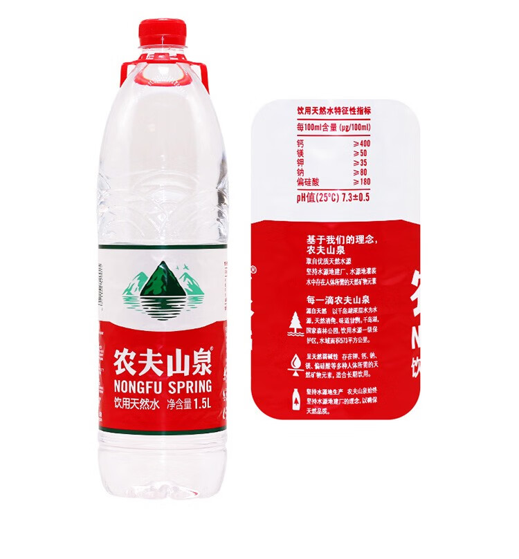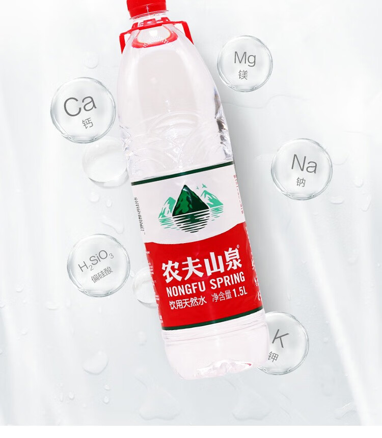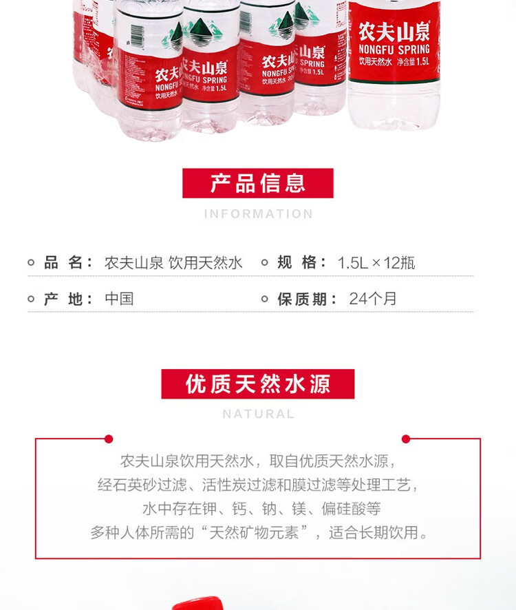 商品名称:农夫山泉 1.5L升*12瓶整箱饮用天然水大瓶装家庭饮用水 1.5L*12瓶/箱 单位:箱