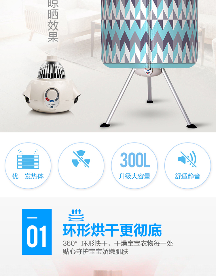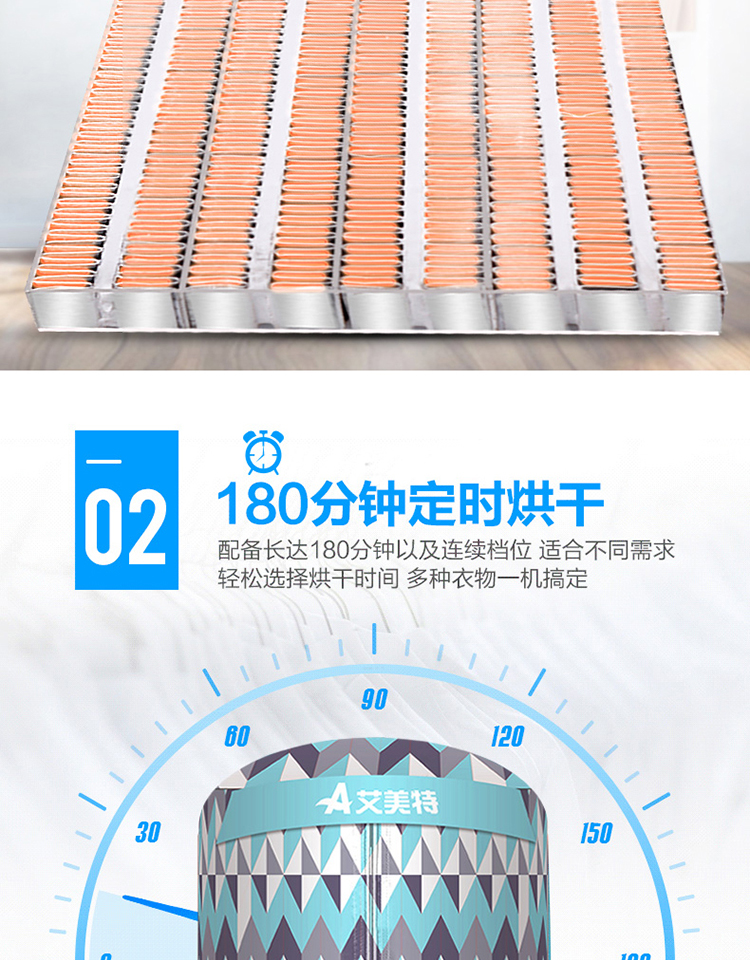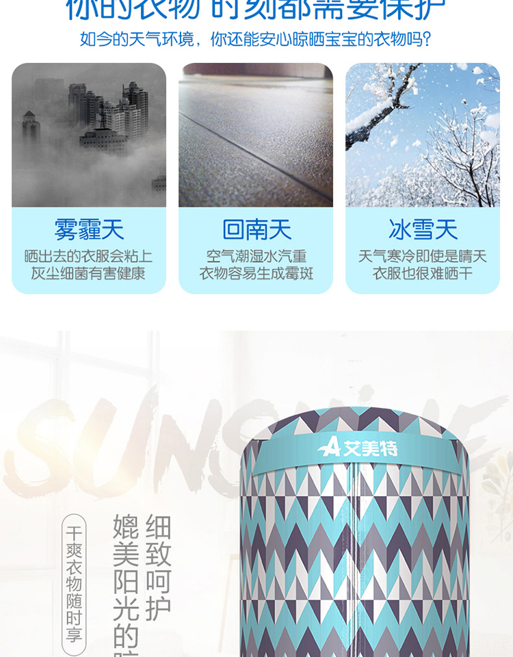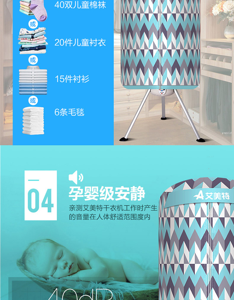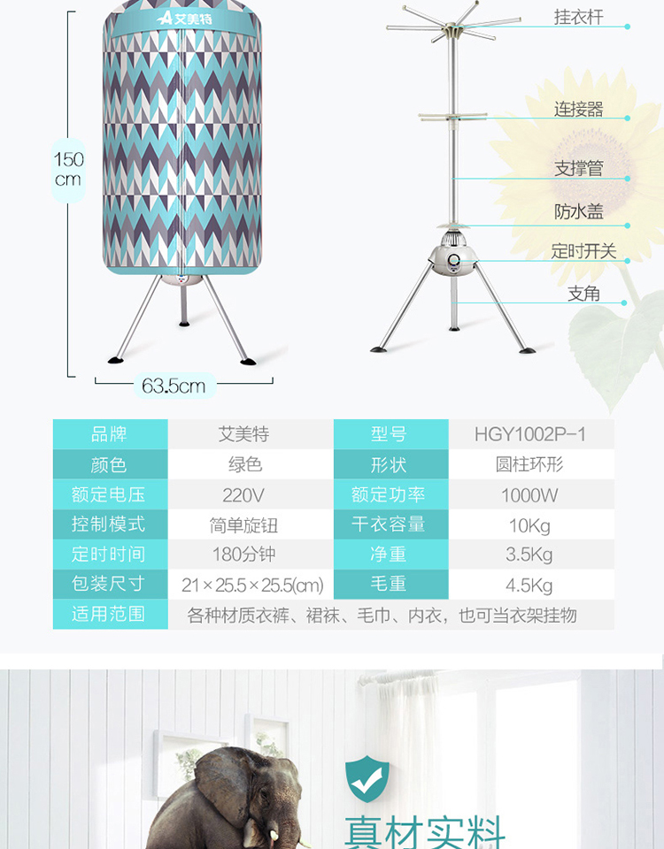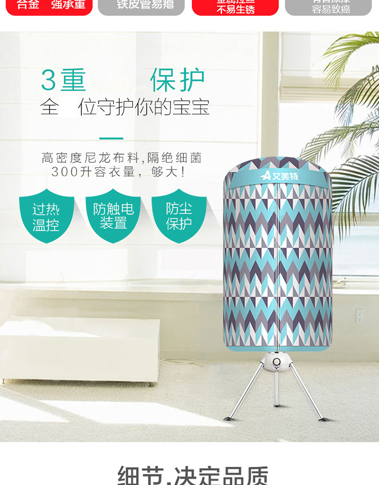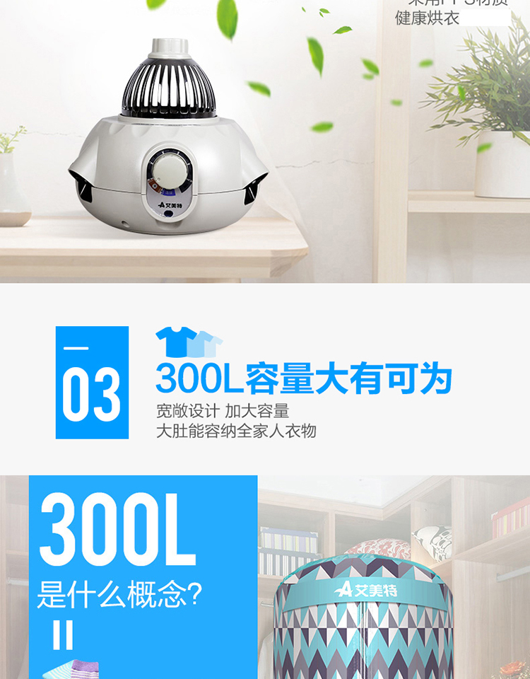 艾美特 烘衣机衣物柜暖风器圆形 GJY1002P-1