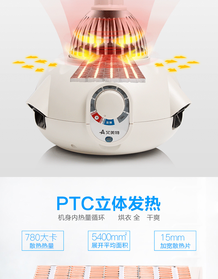 商品名称:艾美特 烘衣机衣物柜暖风器圆形 GJY1002P-1