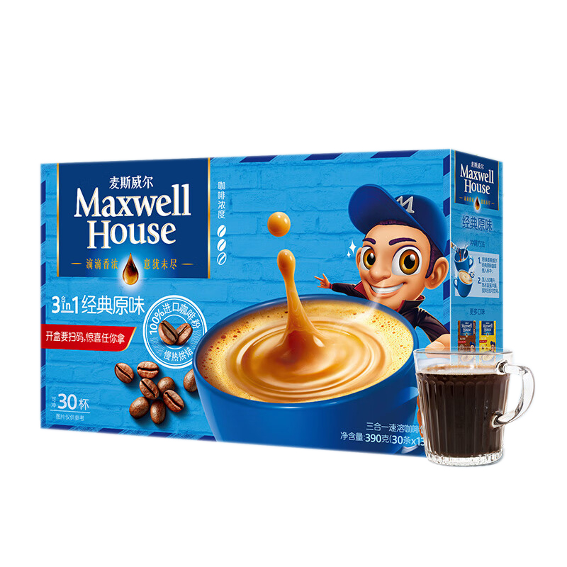 麦斯威尔(Maxwell House)原味速溶咖啡30条(390克/盒)单位:盒