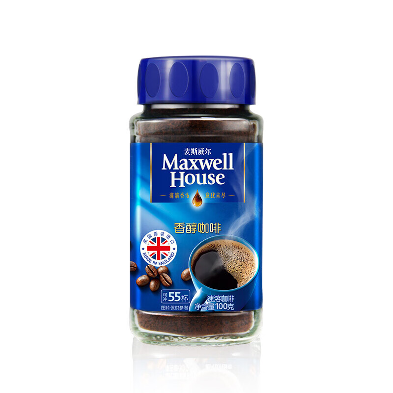 麦斯威尔(Maxwell House)英国进口 速溶香醇黑咖啡100g/瓶 单位:瓶