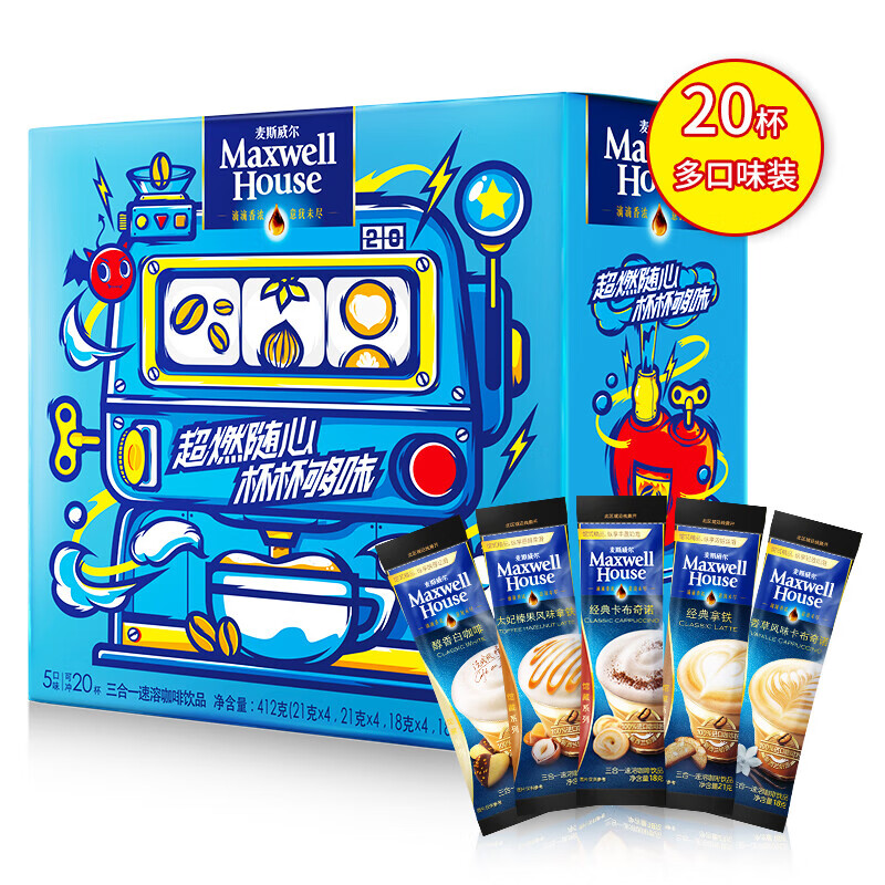 麦斯威尔(Maxwell House)速溶馆藏咖啡组合装20条 412g/盒 单位:盒