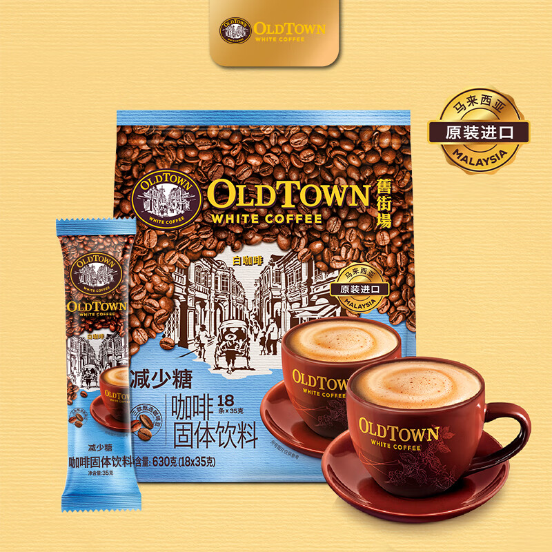 旧街场(OLDTOWN)速溶原味白咖啡减少糖咖啡马来西亚进口三合一咖啡粉35g*18条饮料 单位:盒