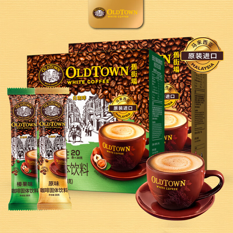 旧街场速溶原味+榛果味白咖啡马来西亚进口三合一咖啡1520g(38g*40条) 单位:组