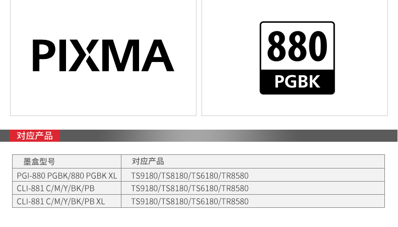 商品名称:佳能/Canon PGI-880 PGBK/880 PGBK XL/CLI-881/881 XL 墨盒(适用TS9180 TS8180 TS6180 TR8580 )