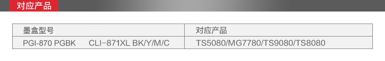 商品名称:佳能/Canon 870/871 XL 5色墨盒套装(适用TS5080、MG7780)